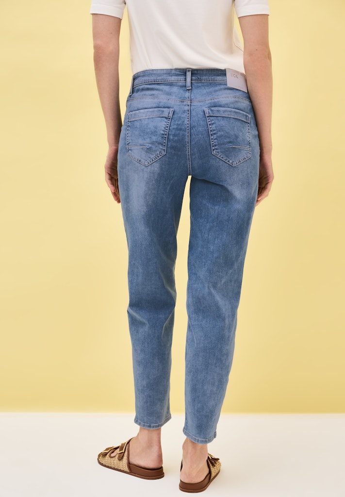 Die Ballon Fit Jeans von CECIL für Damen zeigt sich mit Tapered Legs und lockerer Passform für ein trendiges und gleichzeitig bequemes Tragegefühl. Die hohe Taille und die hellblaue Waschung verleihen der Jeans eine feminine Lässigkeit. Der Stretchanteil im Denim bietet angenehme Bewegungsfreiheit. Jeanshose im Loose Fit High Waist und Tapered Legs Hellblaue Waschung 5-Pocket-Style Baumwollmix mit Stretchanteil Material: 78% Baumwolle, 20% Polyester, 2% Elasthan