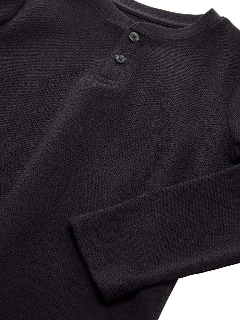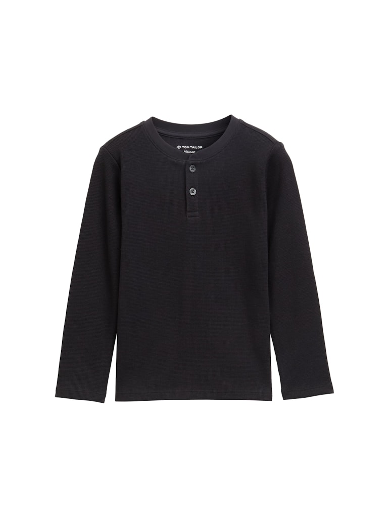 * Henley Longsleeve mit Knopfleiste am Ausschnitt. Aus einem strukturierten Baumwollstoff in Waffel-Optik.