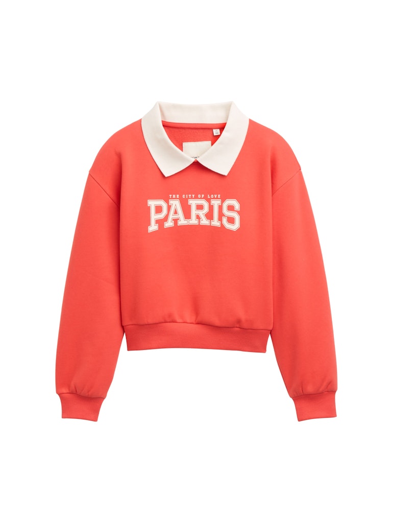 * Cropped Sweatshirt mit Kragen und Print auf der Vorderseite. Mit überschnittener Schulternaht und Rippbündchen am Saum. Leicht aufgerautes Innenfutter sorgt für ein warmes und weiches Tragegefühl.