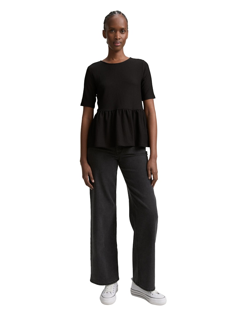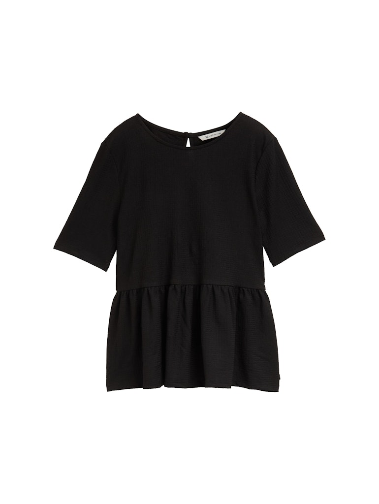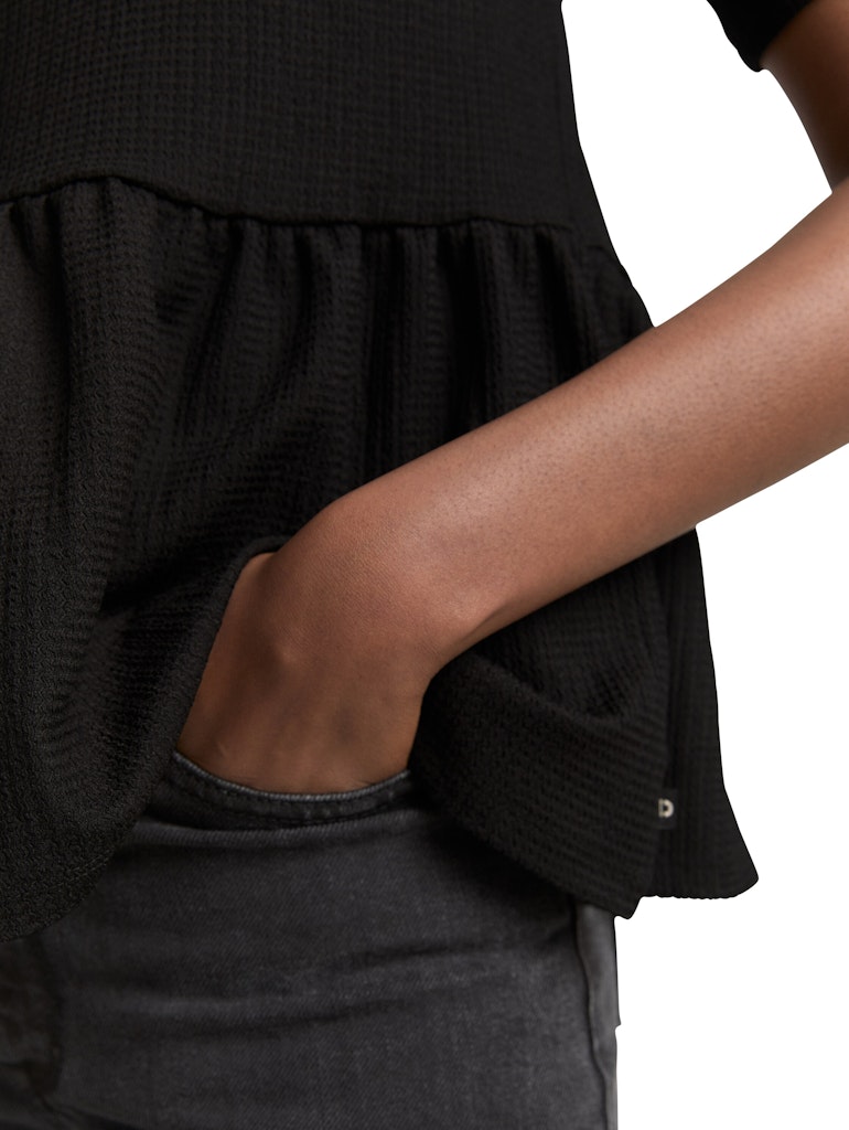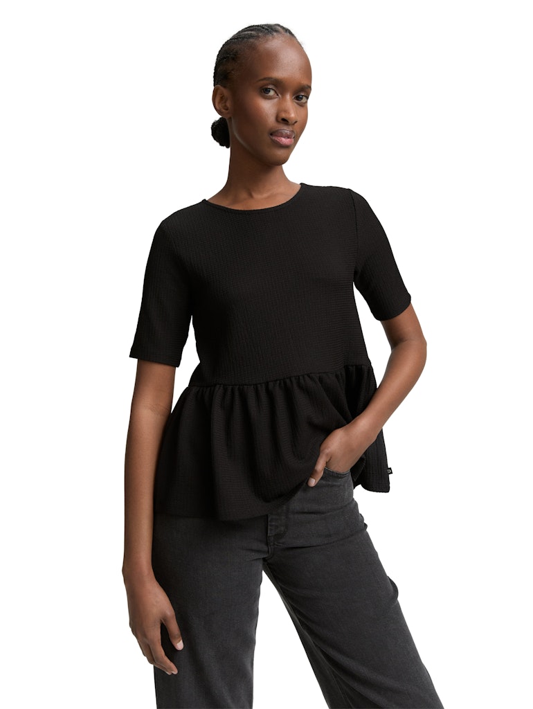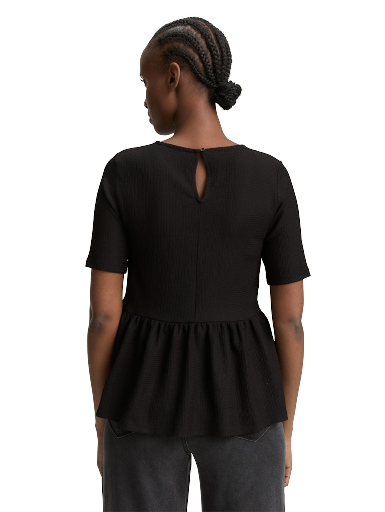 * T-Shirt mit Schößchen am Saum und Knopfverschluss auf der Rückseite. Aus einem strukturierten Jacquard-Stoff.