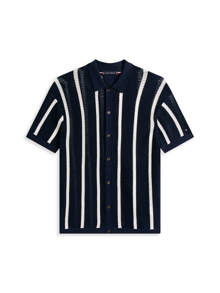 VERTICAL STRIPE OPEN KNIT SHIRT