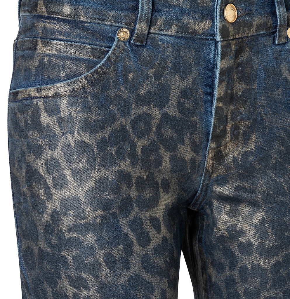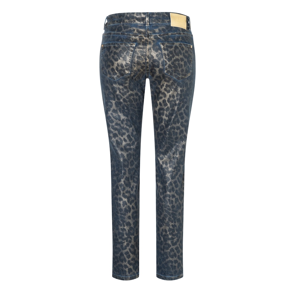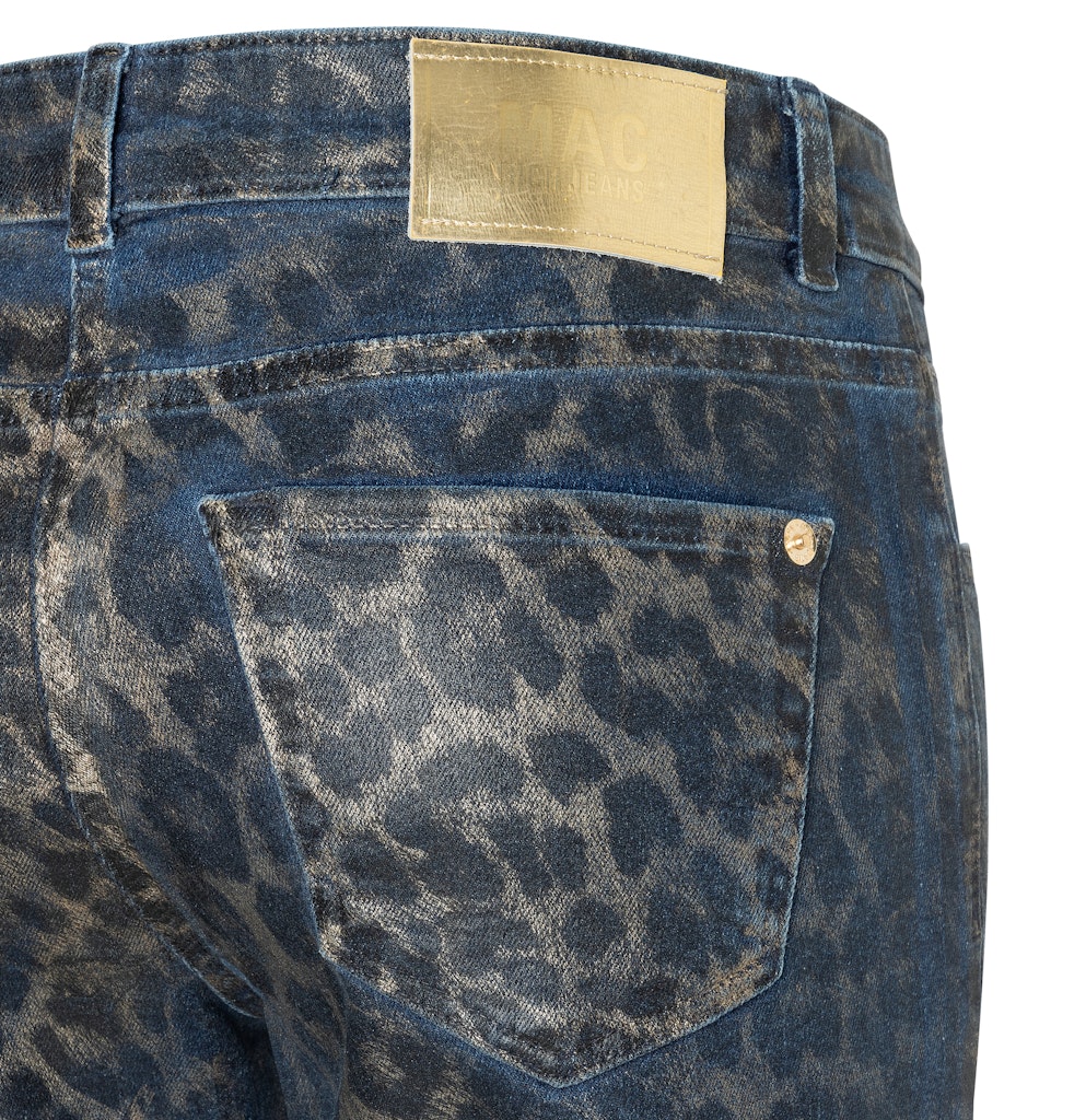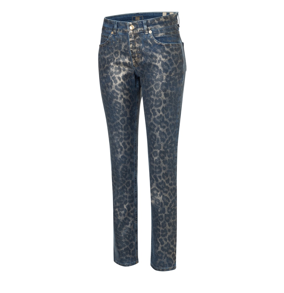 Slim Fit, Slim Leg, schmales, gerades Bein, mittlere Leibhöhe, Five Pocket, moderner Leo-Print, Light Authentic Denim, sehr hautfreundliche, atmungsaktive Ganzjahres-Qualität mit ressourcenschonenden Lyocell-Fasern, leicht im Gewicht, soft im Griff, gefärbt im Indigo Flow-Verfahren für weniger Einsatz von Wasser, Chemie und Farbstoff, authentische Optik, hoher Tragekomfort, Das Model ist 1,75m groß und trägt die MAC Hosengröße 36, Fußweite bei Größe 36: 30cm