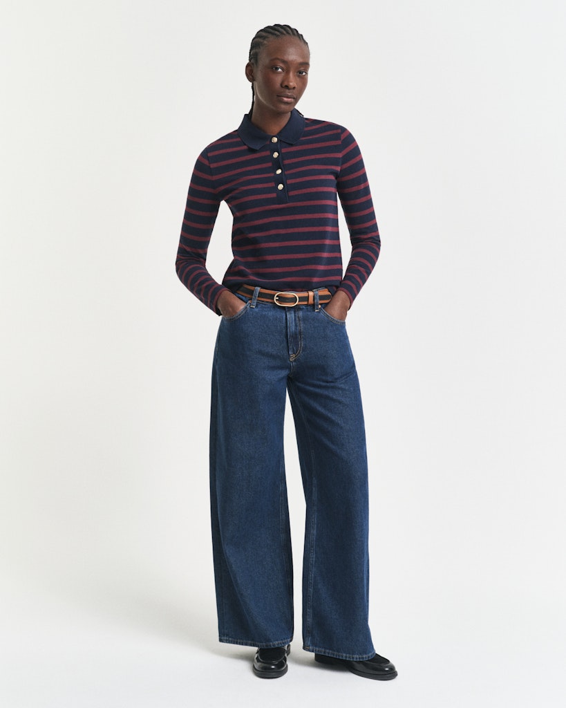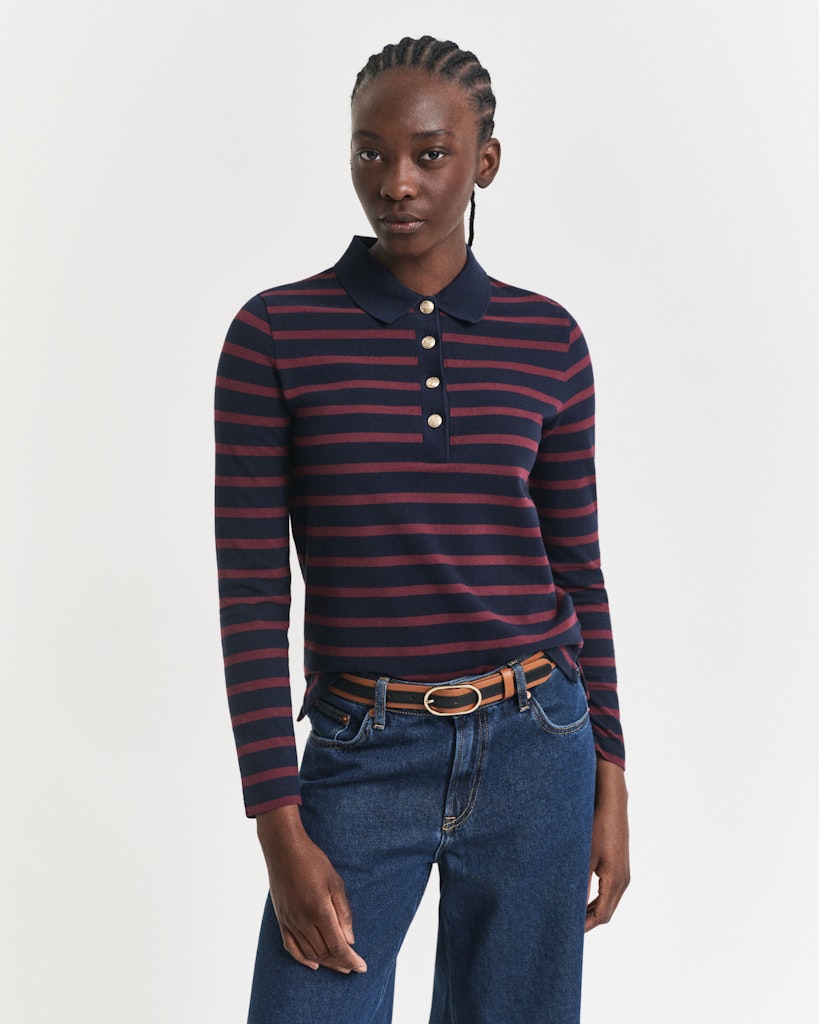 Breton Striped Piqué Langarm-Poloshirt