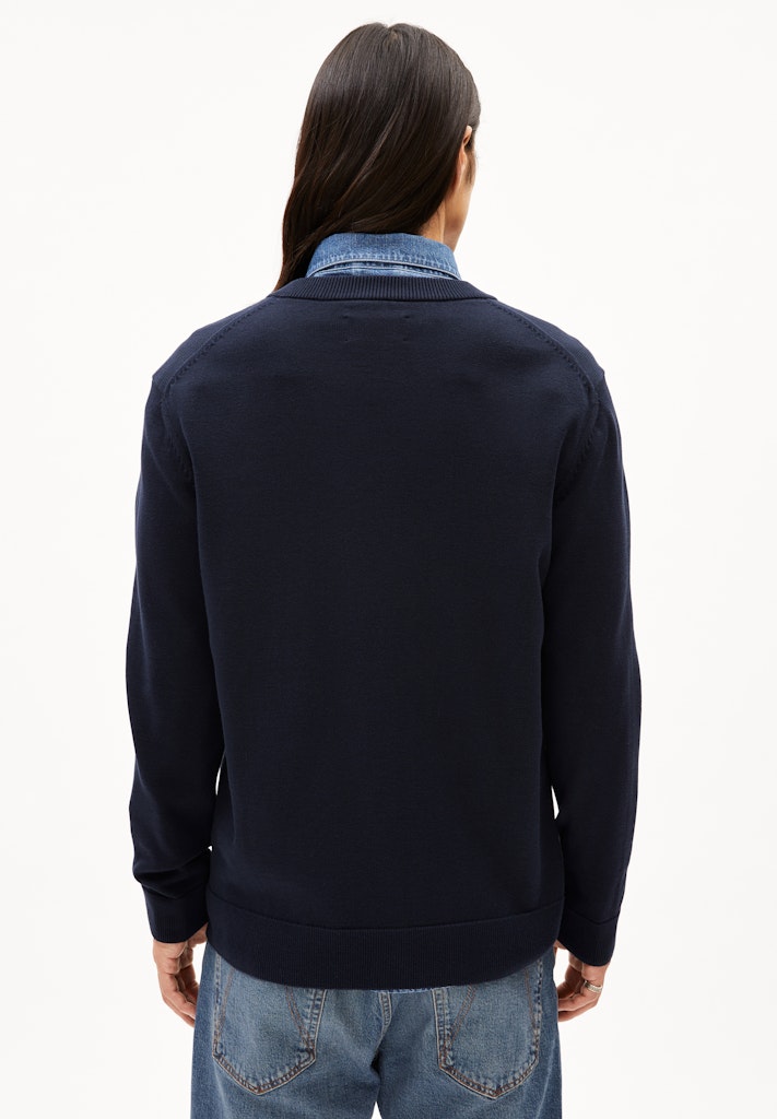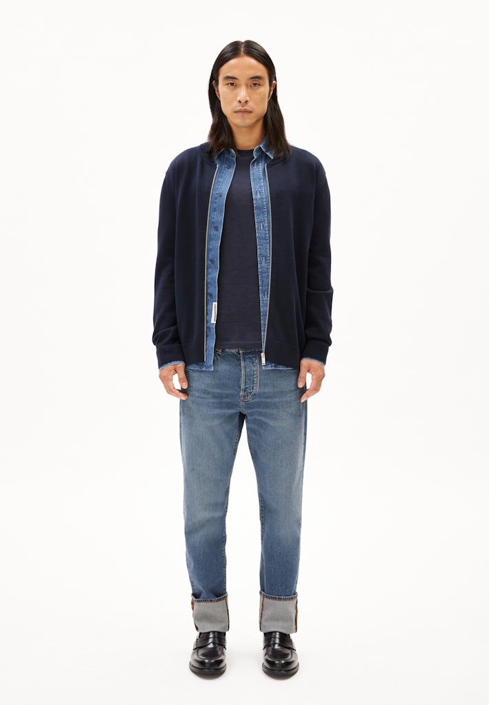 Our AGAAMON knit cardigan, made from pure organic cotton, features a loose fit, a classic blouson collar, and a practical zipper.
