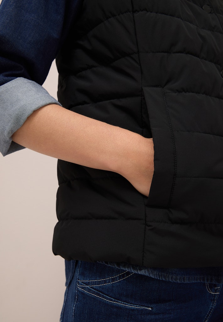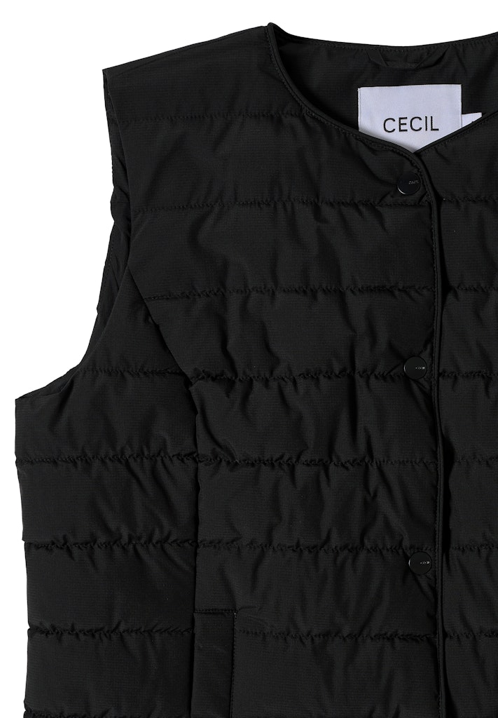 Diese gesteppte Weste von CECIL für Damen ist die ideale Wahl zum drunterziehen, wenn es abends kühler wird oder für ungemütliche Herbsttage. Sie ist perfekt fürs Layering unter Jacken und Mänteln geeignet und sorgt für ein warmes und gemütliches Tragegefühl. Tonale Details, seitliche Taschen und ein Druckknopf zur Ausschnittanpassung machen sie besonders praktisch. Leicht gesteppte Weste für Layeringlooks Seitliche Taschen Tonale Details Drockknopf innen zur Ausschnittanpassung Ideal zum Unterziehen für Jacken und Mäntel Material: Obermaterial: 100% Polyester; Futter: 100% Polyester; Füllung: 100% Polyester