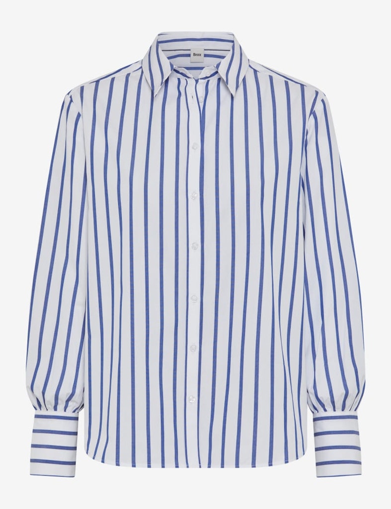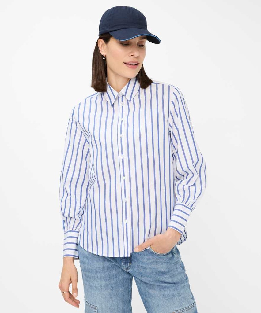 Die Hemdbluse im STYLE VIC präsentiert sich mit einem trendbewussten Design, das klassische Eleganz und modische Akzente harmonisch vereint. Die gerade Silhouette und der zeitlose Hemdkragen verleihen ihr eine klare Linie, die durch den modischen Längsstreifen stilsicher betont wird. Zarte Raffungen im Rückenteil setzen dabei feminine Details. Abgerundet wird das Design der Damenbluse durch eine dezente Knopfleiste und den breiten, schön gearbeiteten 1-Knopf-Manschetten. Die Bluse überzeugt aber nicht nur optisch, sondern auch mit ihrer hochwertigen Popeline-Qualität aus reiner Baumwolle. Das feine Material sorgt für ein angenehm weiches Hautgefühl, natürliche Atmungsaktivität und eine langlebige Strapazierfähigkeit.