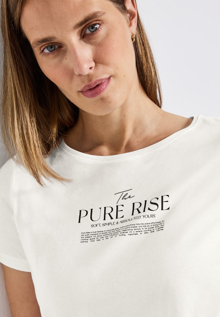 Mit modischem Wording Artwork und softer Baumwollqualität wird dieses T-Shirt von Street One für Damen zu deinem neuen Lieblingsstück. Der klassische Rundhalsausschnitt und die kurzen Ärmel machen es vielseitig kombinierbar – ob lässig zu Denim oder zu Röcken. Der reine Baumwollstoff garantiert dabei ein besonders angenehmes Tragegefühl. T-Shirt Rundhalsausschnitt Kurzarm Feminines Wording Artwork Reine Baumwolle Material: 100% Baumwolle