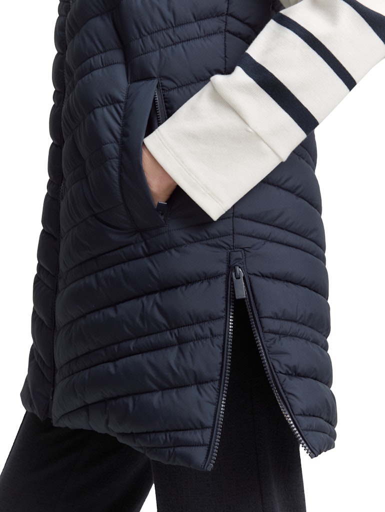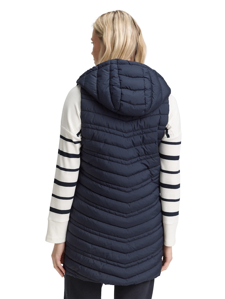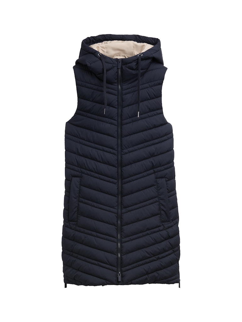 * Lange Weste aus wasserabweisendem Material. Mit Kapuze und seitlichen Eingriffstaschen vorne, die mit einem Reißverschluss zu schließen sind. 2-Wege-Reißverschluss und seitliche Reißverschluss-Schlitze sorgen für mehr Bewegungsfreiheit.