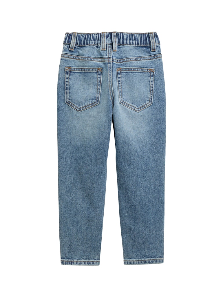 * Relaxed Fit Jeanshose im Four-Pocket-Style mit seitlichen Eingriffstaschen vorne und aufgesetzten Taschen hinten. Mit elastischem Band im Hosenbund zum flexiblen Verstellen der Weite. Stretch-Anteil sorgt für einen angenehmen Tragekomfort und mehr Bewegungsfreiheit.