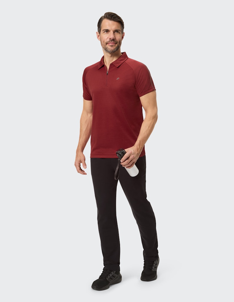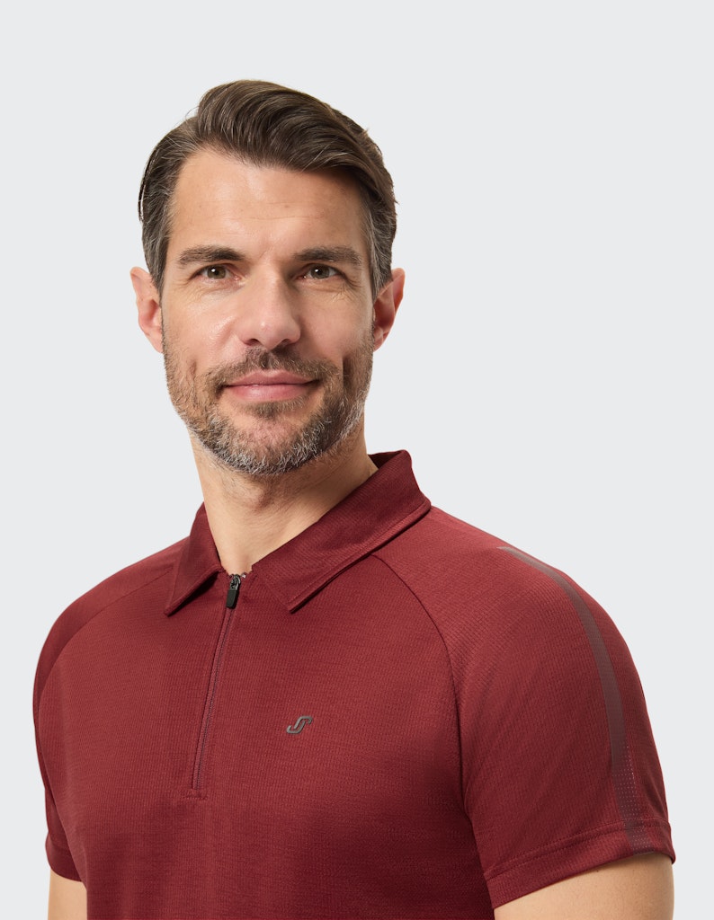 Poloshirt für Herren IVO: sportlich-schick in der Freizeit Egal ob Sie in Ihrer Freizeit aktiv sind oder es sich lieber gemütlich machen möchten – mit dem Poloshirt für Herren IVO sind Sie für jede Aktivität perfekt angezogen. In Kombination mit einer Jeans oder Chino haben Sie im Handumdrehen ein sportlich-schickes Outfit für den Biergartenbesuch mit der Familie oder Ihren Freunden. Tragen Sie zum Sport-Poloshirt für Herren IVO eine Trainingshose, sind Sie bereit für sportliche Aktivitäten wie Tennisspielen, Fahrradfahren oder Golfen. Diese Materialeigenschaften machen das Shirt pflegeleicht und angenehm zu tragen: - Funktionsmaterial aus Polyester- Strukturierte Jerseyware in Melange Optik- Schnelltrocknend Mit seinem schmalen Schnitt und dem klassischen Reißverschluss-Kragen ist das Poloshirt für Herren IVO ein Muss für jeden Mann, der gerne sportlich sowie schick unterwegs ist. Folgende optische Highlights werden Sie überzeugen: - Schmal geschnitten- Kurzarm- Polokragen mit Reißverschluss- Reißverschluss mit Kontraststreifen- Tape Print über den Ärmeln Wählen Sie Ihre Größe aus und bestellen Sie das Poloshirt für Herren IVO direkt bei JOY sportswear.