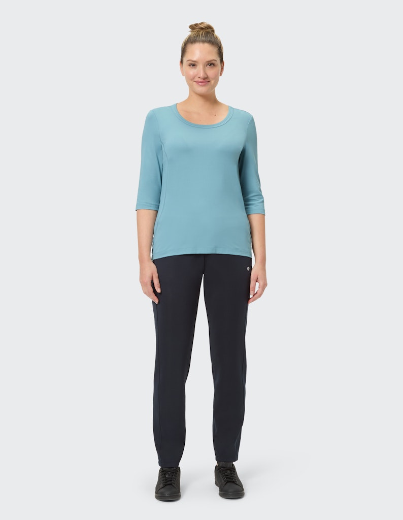 Tragekomfort bei jedem Training: T-Shirt ALISA für Damen. Ob entspanntes Yoga oder schweißtreibendes Training im Fitnessstudio: Mit der richtigen Kleidung macht jede Sporteinheit gleich doppelt so viel Spaß. Das T-Shirt ALISA für Damen von JOY sportswear lässt dabei keine Wünsche offen. Es ist anschmiegsam, weich, atmungsaktiv, pflegeleicht und macht all Ihre Bewegungen zuverlässig mit. Die 3/4-Ärmel und der bequeme Schnitt lassen Ihnen optimale Bewegungsfreiheit bei verschiedenen Sportarten. Für einen optimalen Sitz können Sie das Sportshirt ALISA für Damen in unterschiedlichen Größen bestellen. Das hochwertige Material bietet Ihnen stets ein angenehmes Tragegefühl. Als Fitness- und Yoga-Shirt ALISA eignet sich ebenso hervorragend wie als Oberteil für verschiedenste Tätigkeiten im Alltag. Genießen Sie den ausgezeichneten Tragekomfort beispielsweise während der Gartenarbeit oder beim Einkaufen. Das T-Shirt ALISA punktet mit seinem ansprechenden sowie femininen Design, mit dem Sie überall eine gute Figur machen.