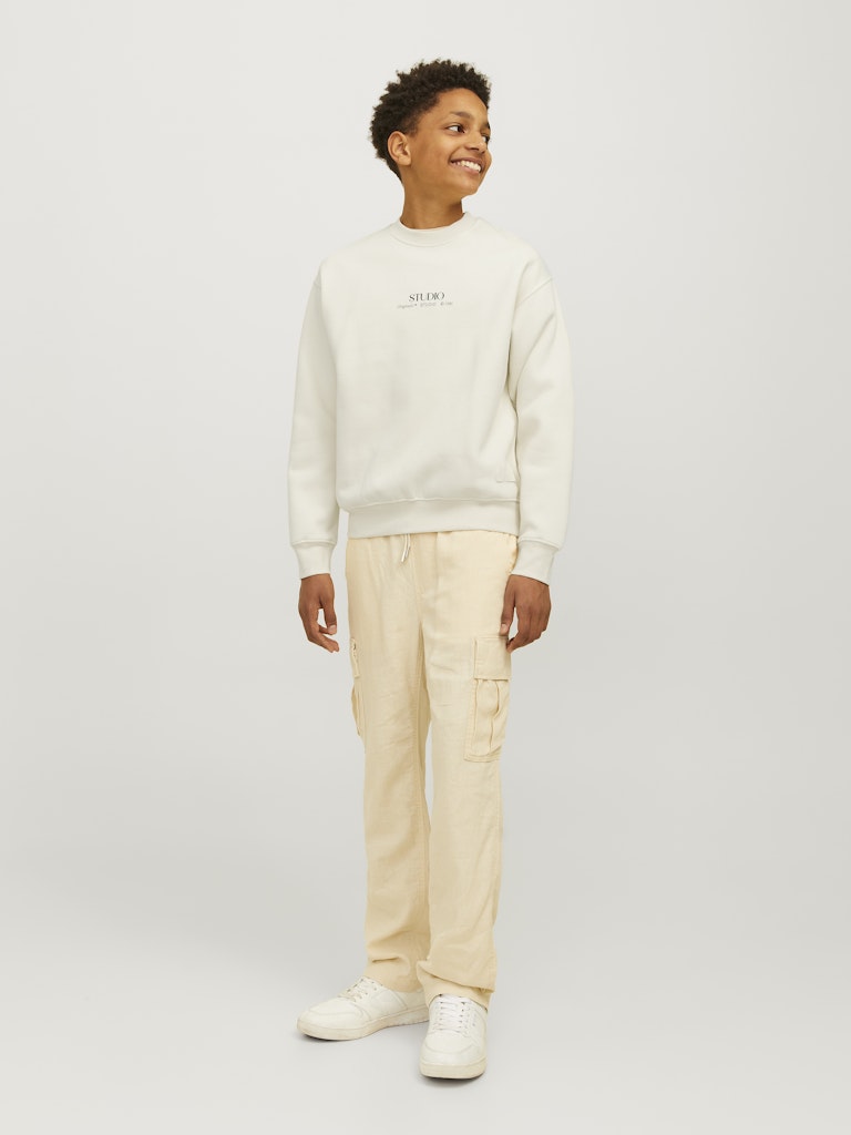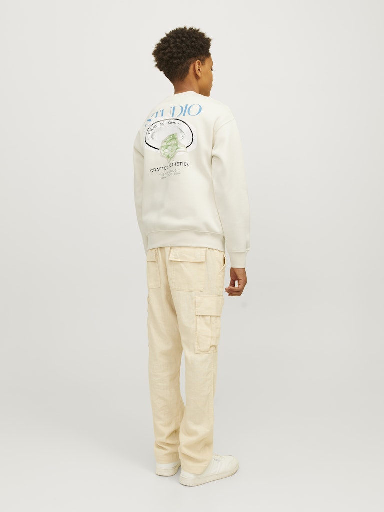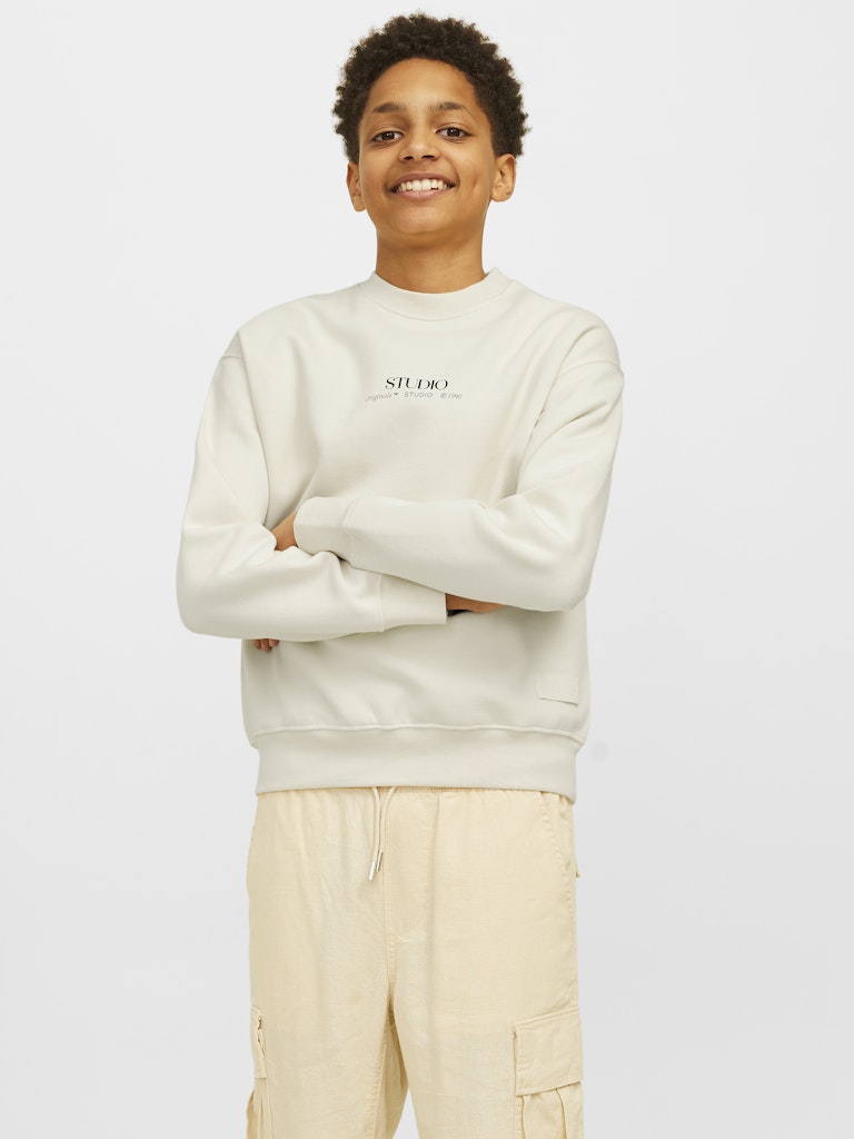Keine Garderobe ist komplett ohne einige bewährte Basics wie Sweatpants.Angerauter Stoff mit einer weichen Innenseite. Leicht angeraute Stoffe haben eine etwas flauschigere Innenseite, die sich weich anfühlt.Entdecke die aufregende Welt von Jack and Jones Junior, in der Mode durch jugendliche Energie und lebhaften Charme zum Leben erweckt wird. Unsere Kollektionen bieten eine Mischung aus neuen, trendigen Designs, die Jungen im Alter von 3-16 Jahren ansprechen. Tauche in hochwertige und bequeme Styles ein, die speziell für junge Fashion-Liebhaber entwickelt wurden. Bei Jack and Jones Junior interpretieren wir Mode für Jungs im Alter von 3 bis 16 neu, indem wir coole Passformen und moderne Styles kombinieren und dabei immer wieder Elemente aus der Erwachsenenmode einfließen lassen.. - Produkttyp : Sweatshirt - Hals : Rundhalsausschnitt - Ärmel : Langarm - Ärmel : Eingesetzte Ärmel - Print : Muster auf der Rückseite des Produkts - Körperform : Junior - Passform : Volumiger Fit