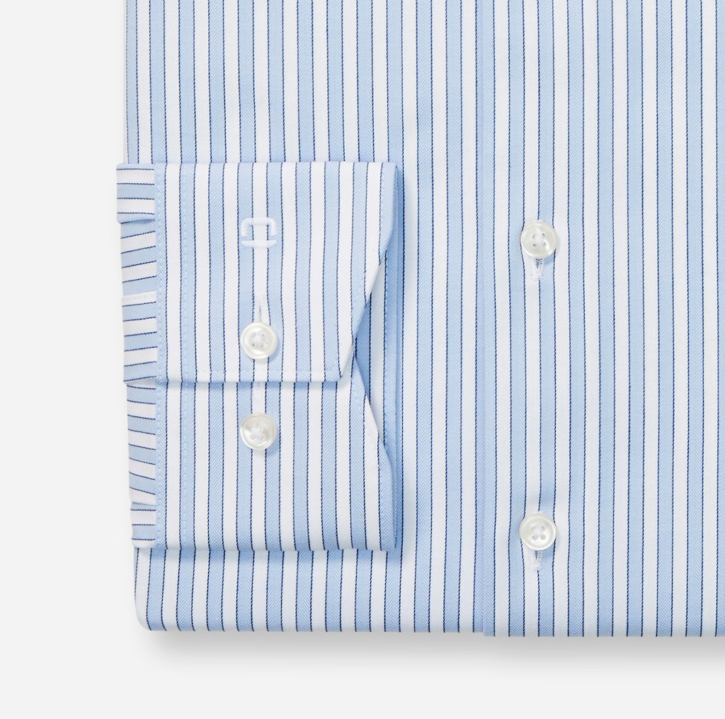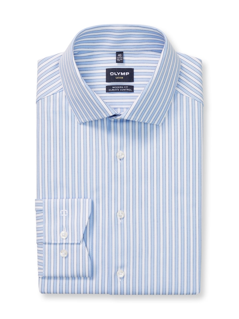 Klassische Streifen raffiniert interpretiert. Das sportiv geschnittene OLYMP Luxor modern fit sorgt mit Climate-Control-Garnen für das einzigartige Tragegefühl. Die innovative Textur ist atmungsaktiv, dehnbar, schnelltrocknend, pflegeleicht sowie temperatur- und feuchtigkeitsregulierend. Der weltoffene Global Kent vollendet stilsicher.
