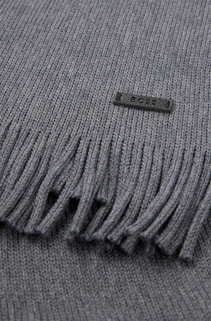 Vielseitig kombinierbarer BOSS Schal, der mit Raschel-Struktur gestrickt wurde. Fransen und eine Logo-Applikation aus Kunstleder runden das Accessoire ab. Dieses Produkt wird mit nachhaltiger gewonnener Wolle gefertigt. Nachhaltiger gewonnen bedeutet für uns mulesingfrei unter Einhaltung der Fünf Freiheiten für das Tierwohl.