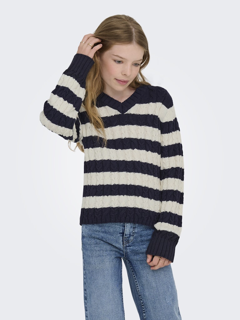 Weiche Strick-Styles sind warm, bequem und einfach perfekt für jeden Anlass und jede Jahreszeit. - Produkttyp : Strickpullover - Hals : V-Ausschnitt - Ärmel : Langarm - Manschetten : Gerippte Ärmelbündchen - Passform : Locker geschnitten - Achtung : WARNUNG! Von Feuer fernhalten.