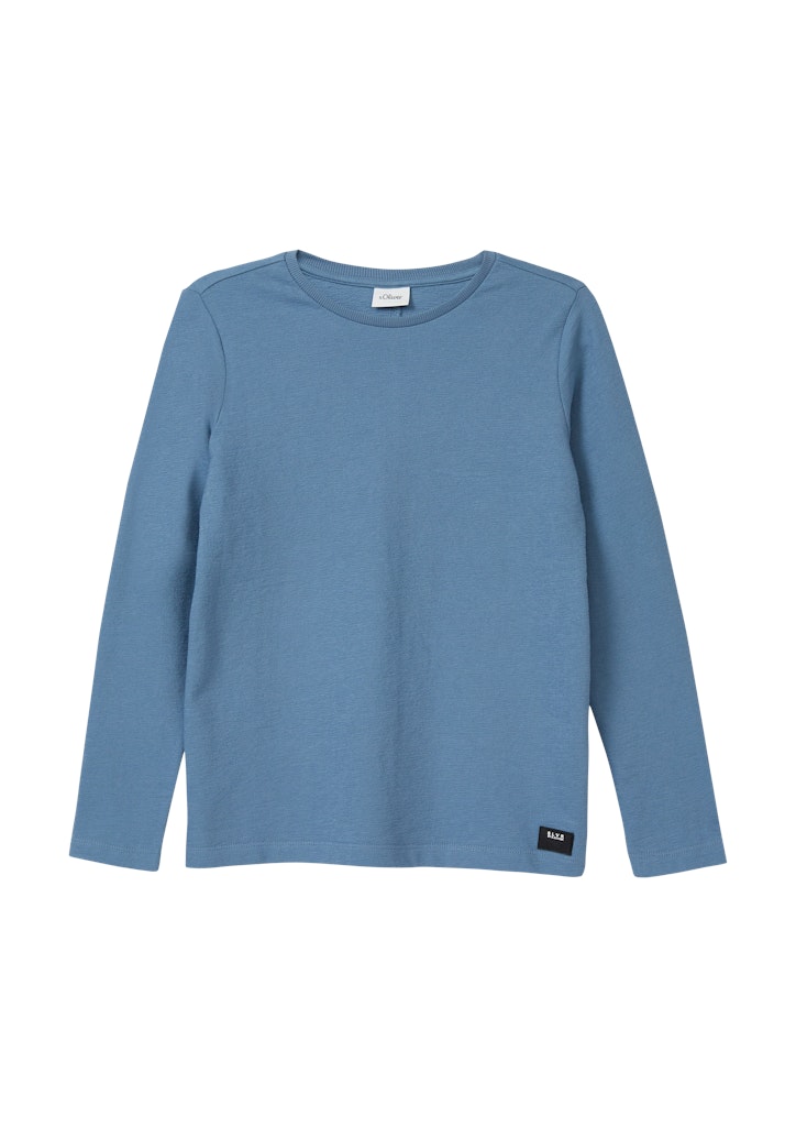 Lässiges Longsleeve mit interessanter Crêpe-Struktur aus leichtem, hautfreundlichem Baumwoll-Sweat. Der klassische Rundhalsausschnitt mit Rippblende und die bequeme Regular-Fit-Passform machen es zum vielseitigen Basicliebling für dein Kind.