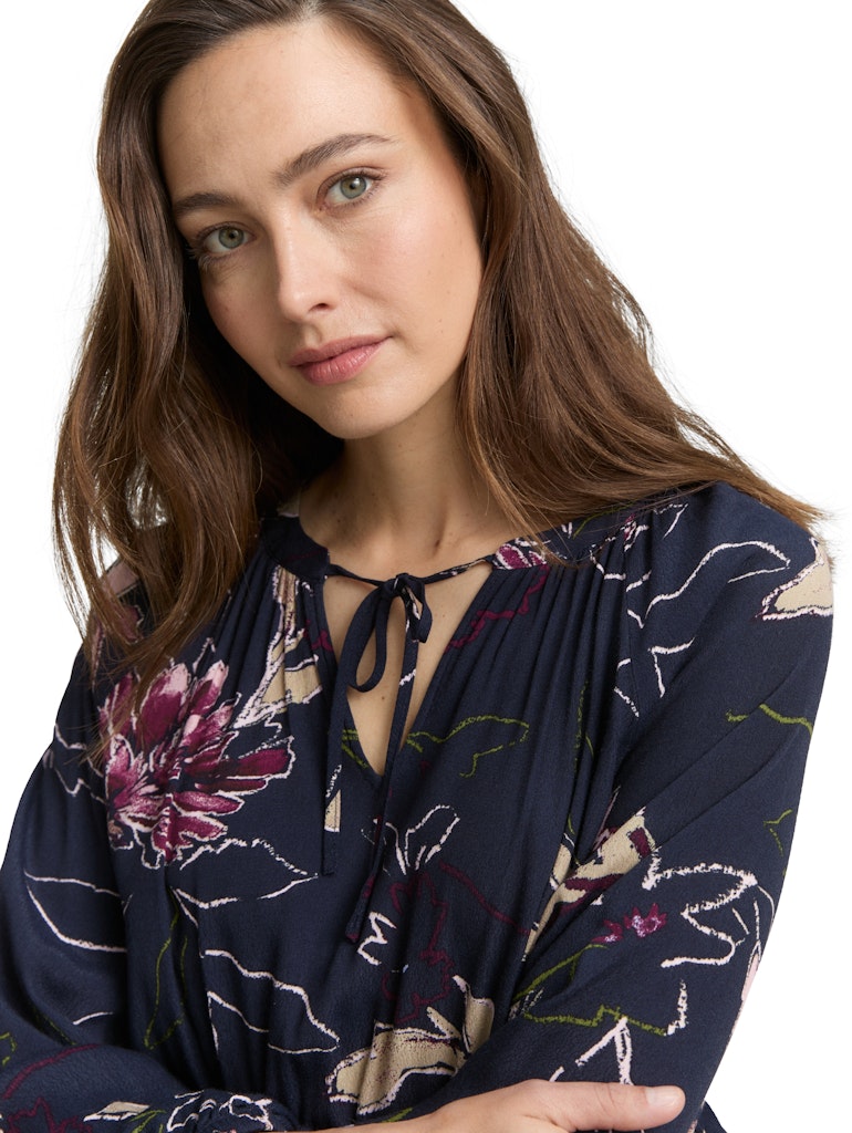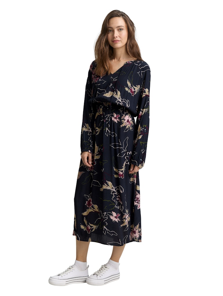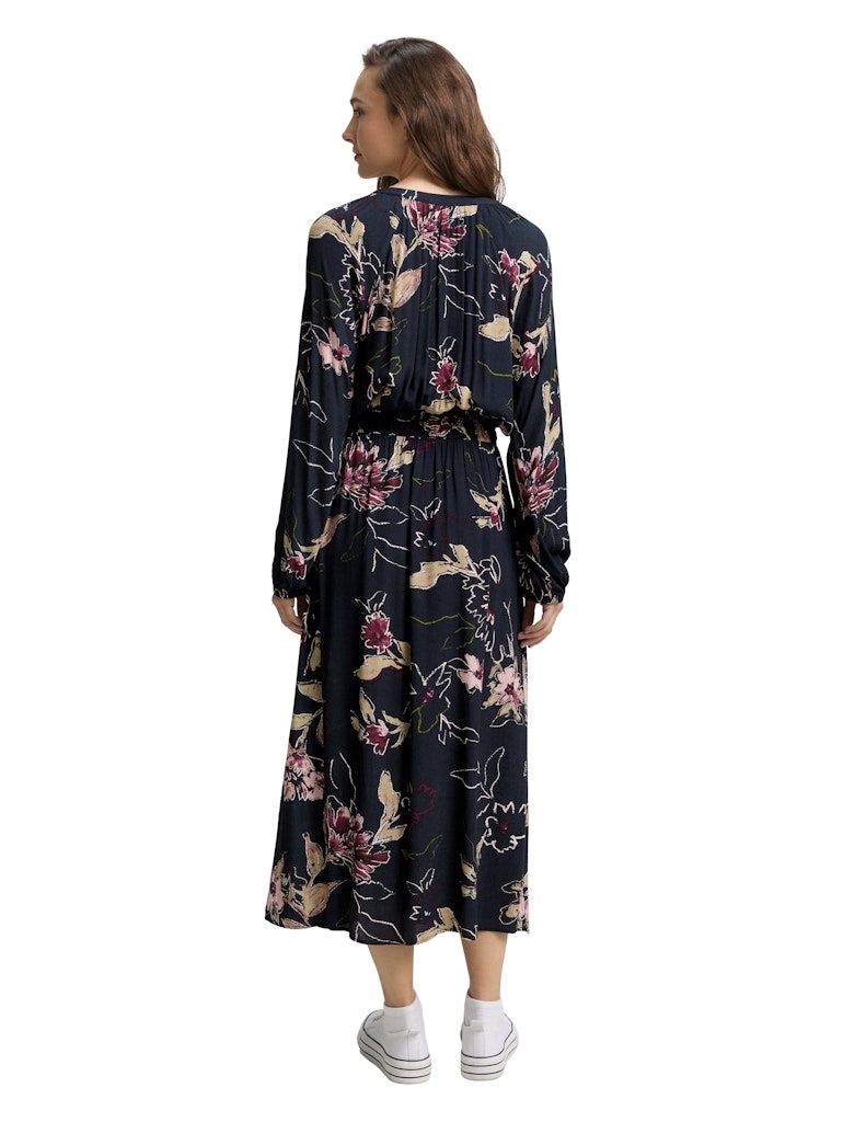 * Langes Kleid mit Blumen-Allover-Print und elastischem Gummibund an der Taille und am Ärmelsaum. Mit Kordelzug und leichten Raffungen am Ausschnitt sowie Seitenschlitzen für mehr Bewegungsfreiheit. Aus einem strukturierten Krepp-Material.