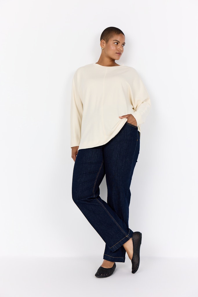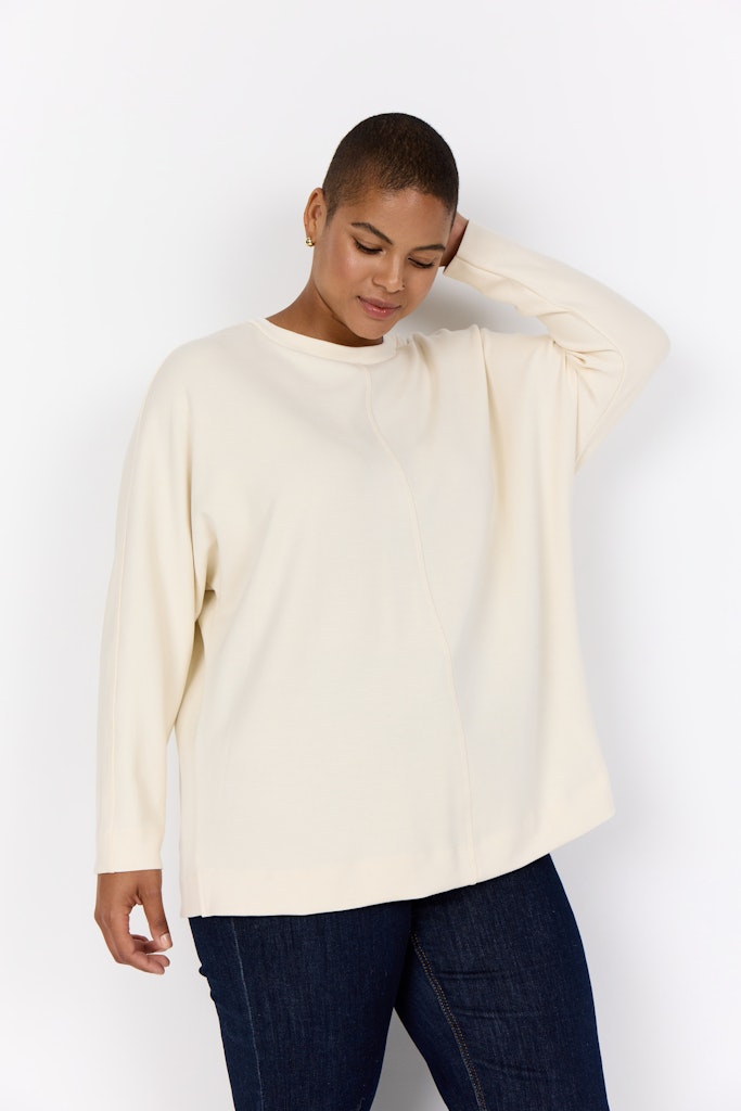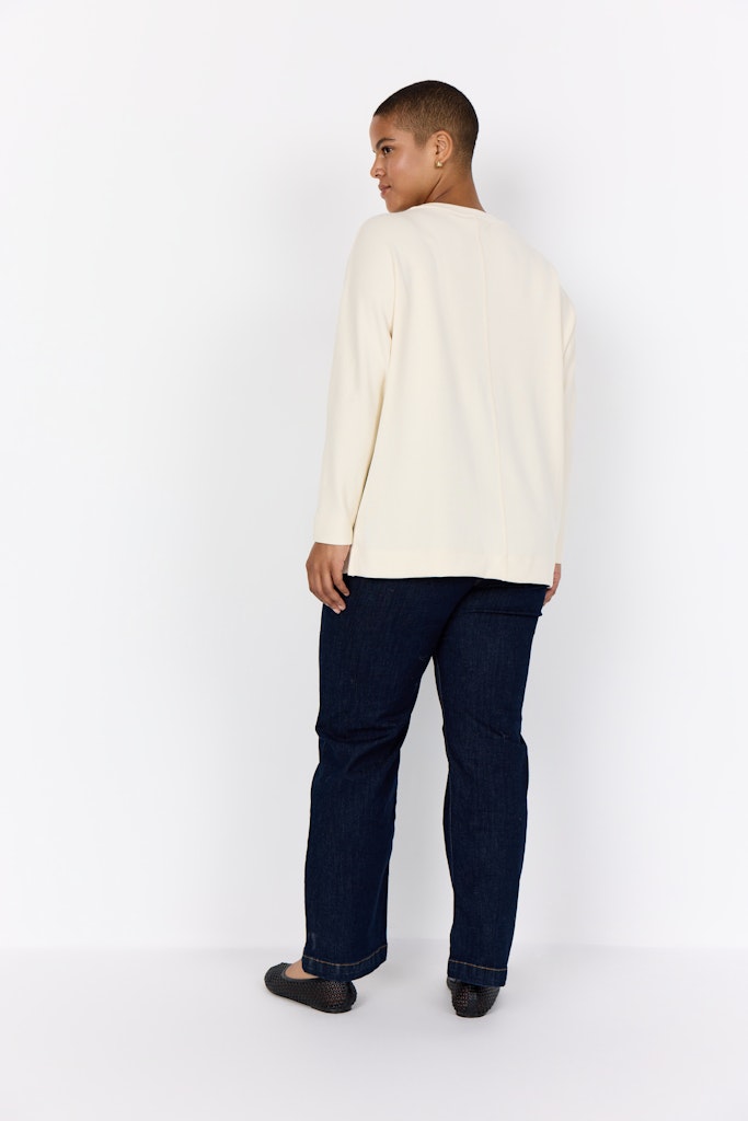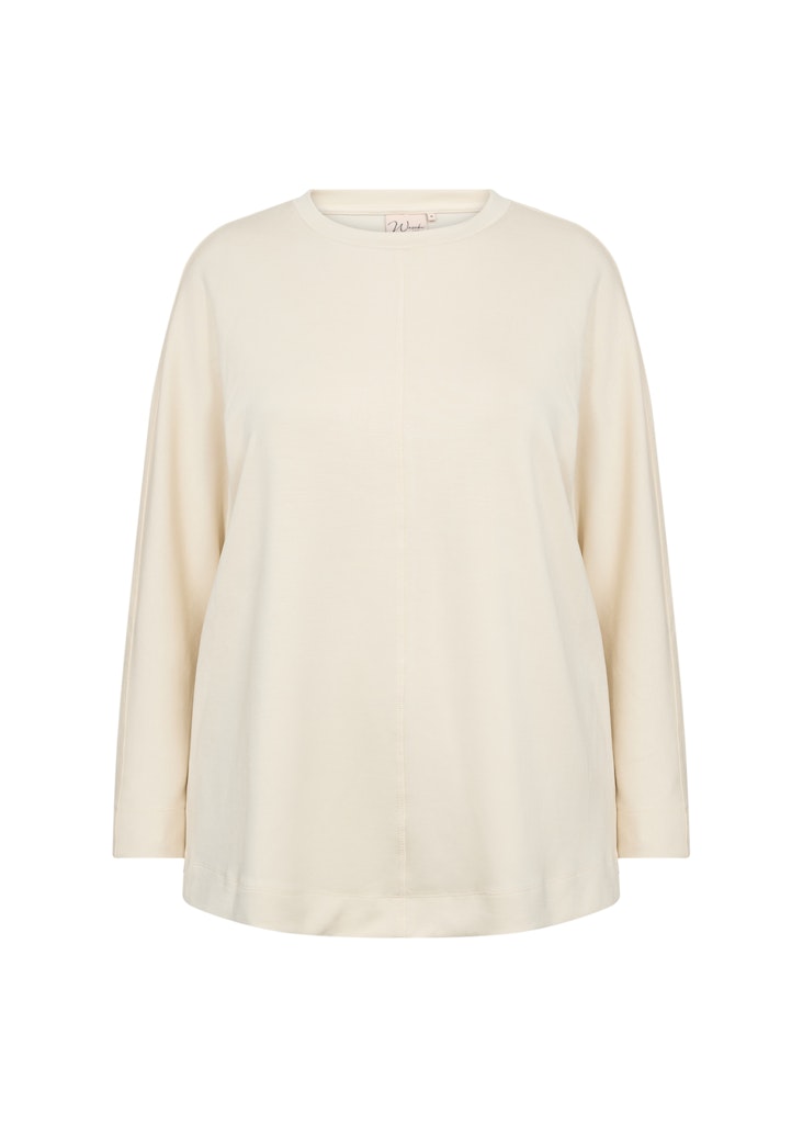WA-SABINA 59 ist ein Sweatshirt aus 48% Modal, 48% Polyester und 4% Elasthan. Es hat einen Rundhalsausschnitt, eine zentrale Naht und lange Ärmel mit einer entspannten Passform. Kombiniere es mit Jeans oder lässigen Röcken für einen bequemen Alltagslook.
