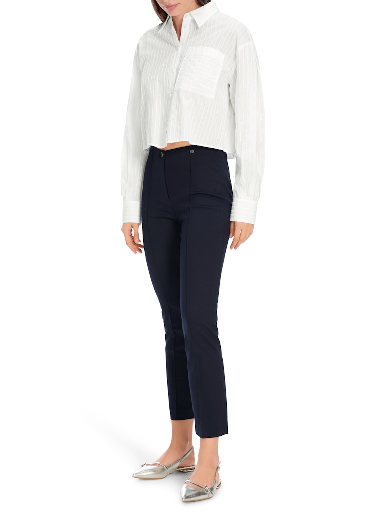 7/8 Hose aus feinem Jersey|Schmale 7/8 Hose mit Bügelfalte und Gummibund. Die Hose verläuft nach unten hin gerade und wir vorne mit einem Reißverschluss und einem Knopf geschlossen.|Farbe: midnight blue|Dehnbare Viskosemischung|Femininer Schnitt|Das Model ist 179 cm groß und trägt N3/38.|Bügelfalte