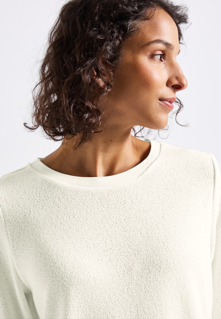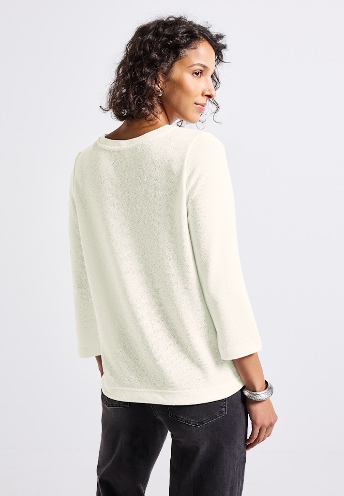 Dieses Shirt von Street One überzeugt mit seiner Strick-Look-Qualität und einem soften Griff. Rippdetails am Rundhalsausschnitt und ein Tunnelzug am Saum bringen modische Akzente ins Spiel. Die 3/4-Ärmel mit Bündchen runden das Design lässig ab. Damenshirt Rundhalsausschnitt mit Rippdetails 3/4-Arm mit Bündchen Tunnelzug am Saum Strick-Look Qualität Material: 78% Polyester, 17% Viskose, 5% Elasthan