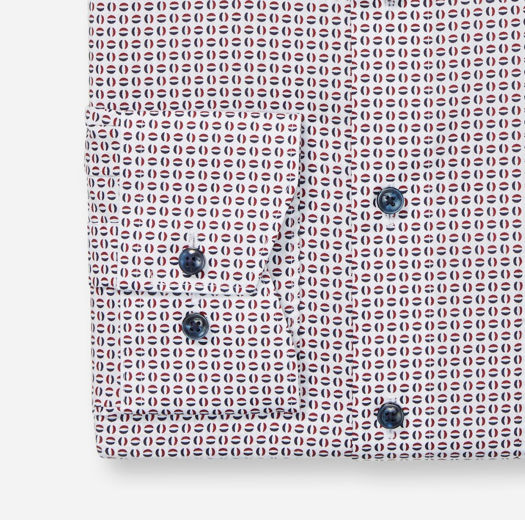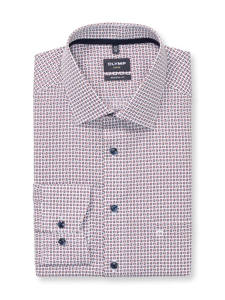 Ein perfekter Office-Look, smart, dynamisch, stilvoll. Die körpernahe Linie des OLYMP Luxor Businesshemdes aus feinen Baumwollgarnen und das charmante Minimal-Dessin in blautonaler Farbkomposition und Chianti-Rot wirken inspirierend. Der vielseitige New Kent matcht zur sportiven Business-Performance. Bügelfrei, natürlich dehnbar, atmungsaktiv.