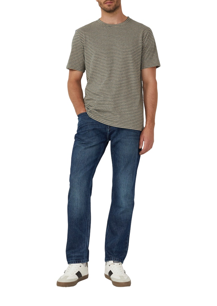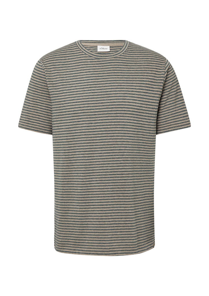 Entspannt durch den Tag: Das melierte Ringel-Shirt mit Crew Neck und Label-Patch ist dein bequemer Begleiter. Aus weichem Jersey gefertigt, passt es perfekt zu deinem Casual-Look. Ein unkompliziertes Basic für viele Gelegenheiten.