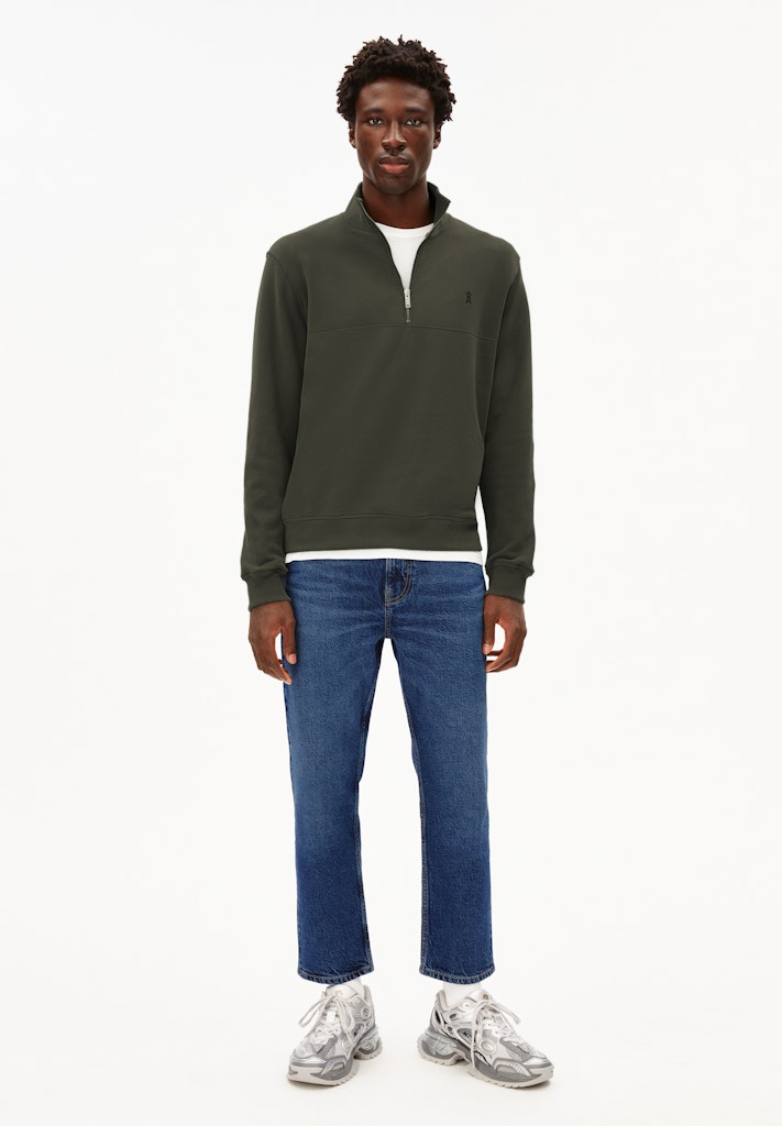 The WAARLO FLEECE sweatshirt is crafted from robust organic cotton with a soft surface and a warming fleece lining. A half-zip stand collar and subtle logo embroidery ensure high wearing comfort.