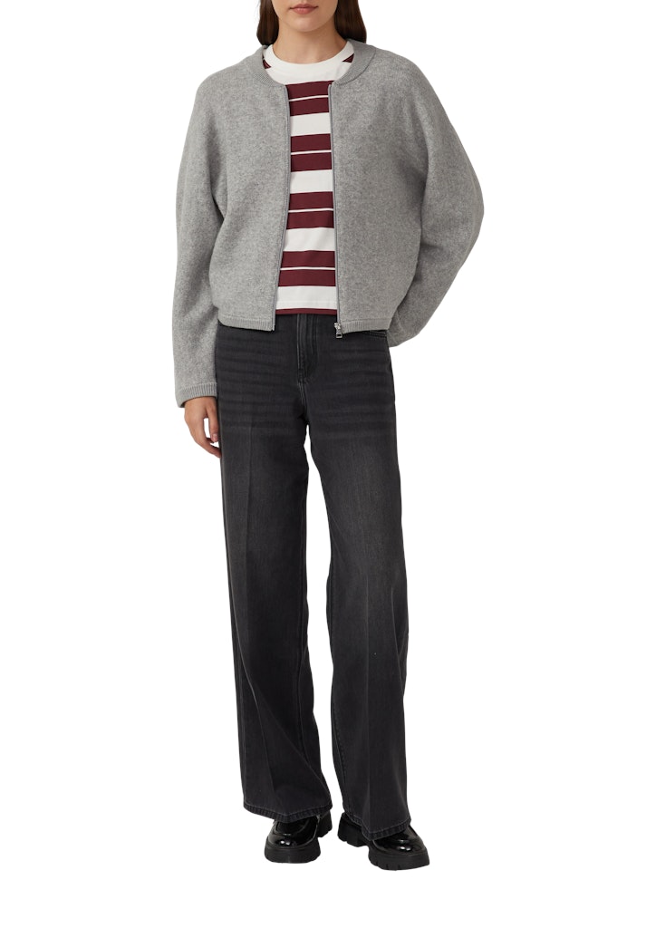 Kuschel dich ein in diese Strickjacke aus Wollmix. Mit ihrem weichen Strickmuster und wärmenden Fledermausärmeln ist sie ein Must-have für kühle Tage. Der Reißverschluss und die Rippbündchen machen sie zu deinem bequemen Begleiter für entspannte Casual-Looks. Du fühlst dich darin einfach wohlig umhüllt.