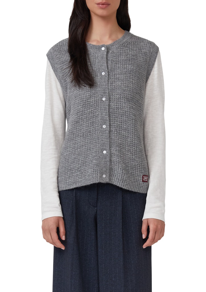 Diese kuschelige Strickweste aus Alpakamix begeistert mit ihrem weichen, wärmenden Material. Der Rundhalsausschnitt und die Knopfleiste verleihen ihr einen lässigen Casual-Look. Ideal für Lagen-Looks im Alltag.