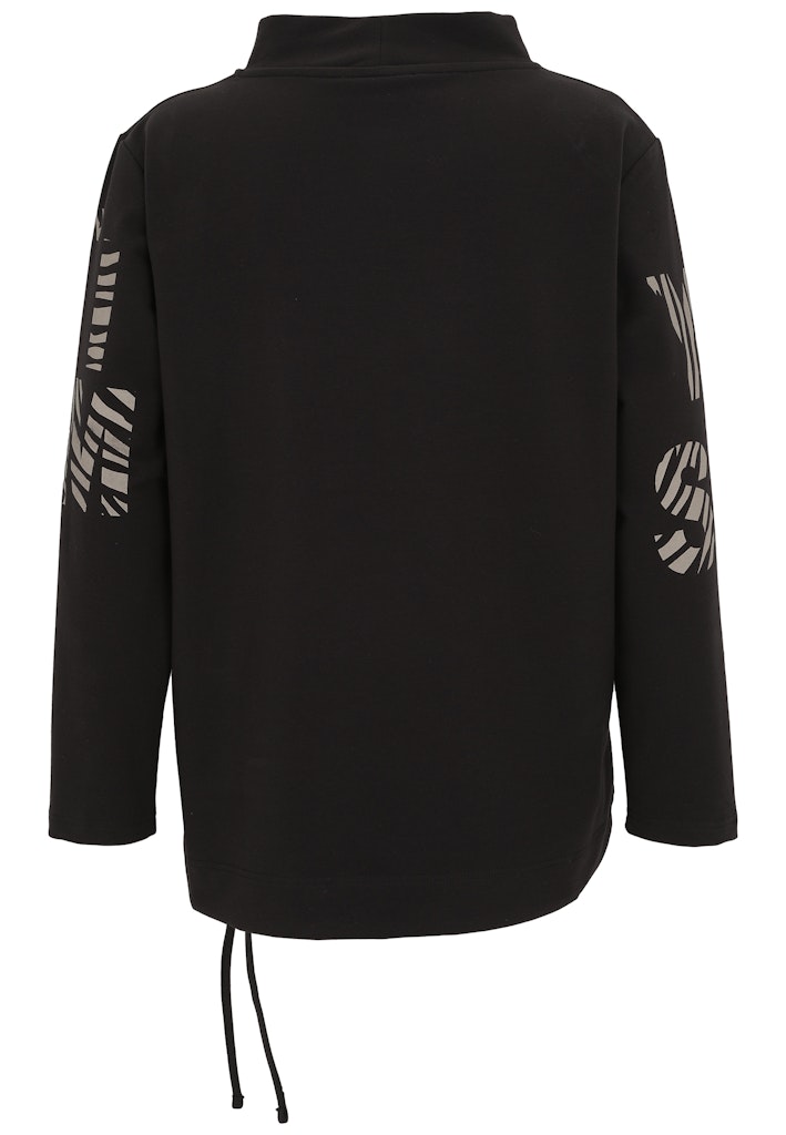 Das lässige Sweatshirt von Doris Streich ist aus elastischer Sweatware gefertigt. Zum Hingucker wird es durch seine platzierten Motive auf Vorderteil und beiden Ärmeln, die mit Metallplättchen geschmückt sind. Der lockere Stehkragen und die Ösen mit