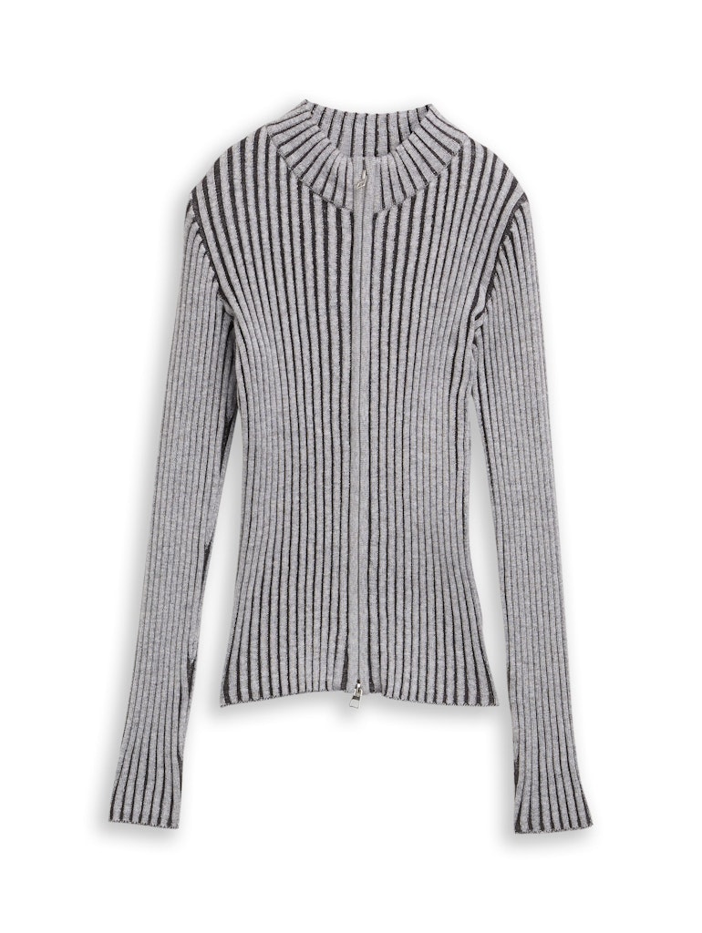 * Eng anliegende Strickjacke aus Baumwolle mit Stehkragen und 2-Wege-Reißverschluss