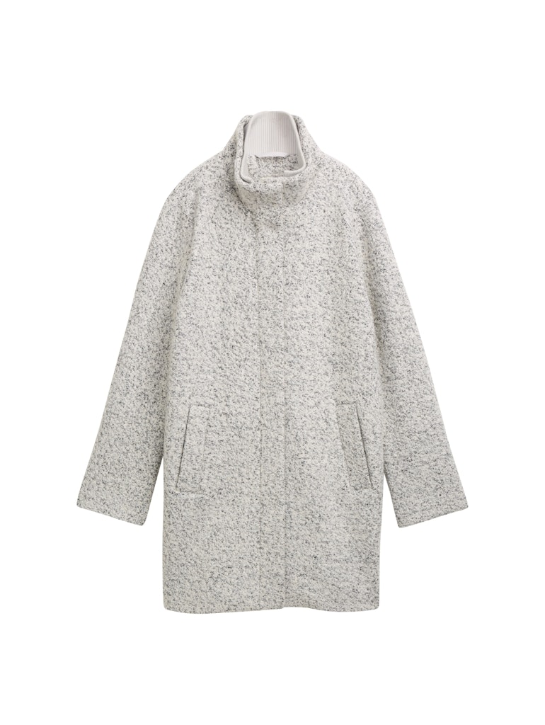 * Strukturierter Mantel aus Bouclé mit weichem Wollanteil, Stehkragen und seitlichen Eingriffstaschen vorne. 2-Wege-Reißverschluss und Schlitz hinten am Saum sorgen für mehr Bewegungsfreiheit.