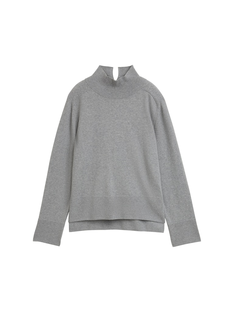 * Pullover in Melange-Optik mit Schlitz hinten am Stehkragen und Rippbündchen am Saum. Aus einem weichen Strickmaterial mit Wollanteil für ein besonders warmes und angenehmes Tragegefühl.