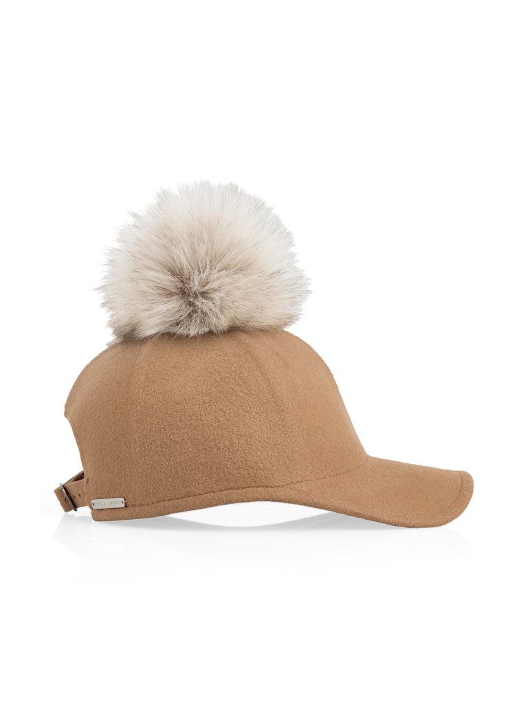 Woll-Cap mit Kunstfell-Bommel