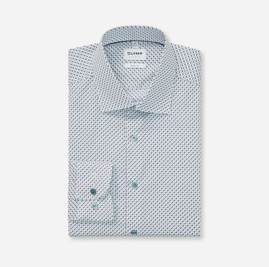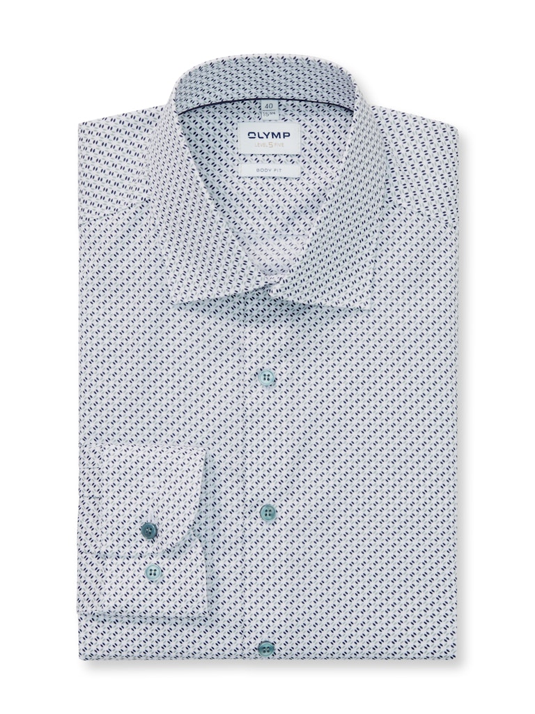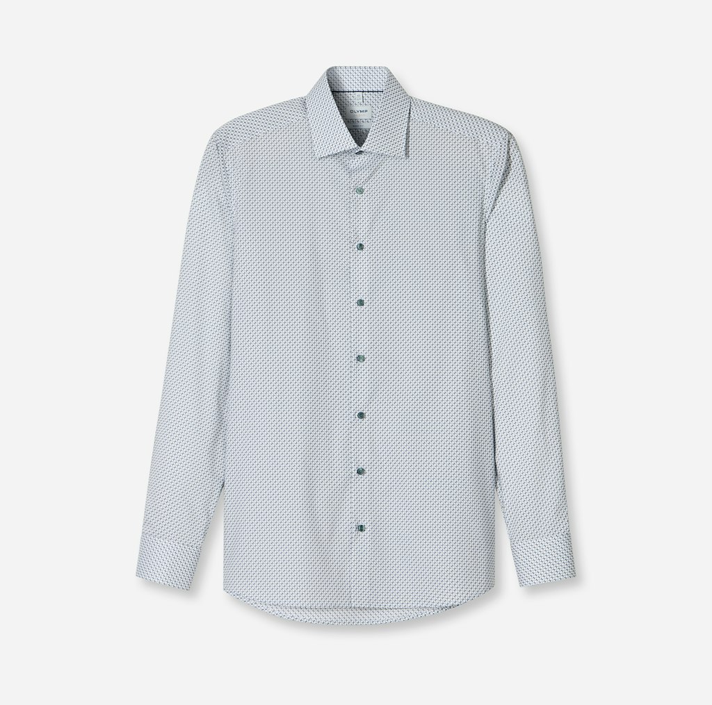 Das dezente Minimal-Dessin mit neuen Farbtönen überzeugt charmant. Entsprechend der OLYMP Level Five Linie ist das Businesshemd attraktiv körperbetont geschnitten und passend dazu mit maskulinem New York Kent ausgestattet. Der bewährte Comfort Stretch sorgt für Bewegungsfreiheit und angenehmen Tragekomfort. Besonders bügelleicht.
