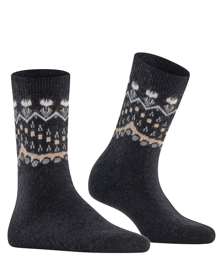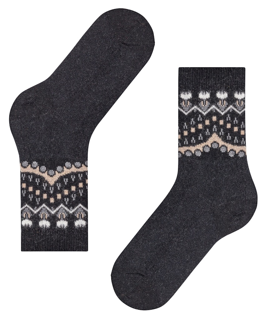 Ein Must-Have für die Winter-Saison: Der Norweger. Dieser luxuriöse und komfortable Strumpf vereint die bewährte FALKE Cosy Wool-Qualität mit einer modernen Interpretation der Norweger-Optik. Das stilvolle Design verbindet das klassisch winterliche Volksmotiv mit zarten, femininen Akzenten, wie floralen Elementen und dezenten Verzierungen. Dank der nachhaltigen Materialkomposition aus Merinowolle, Kaschmir und Viskose wird ein besonders weiches und wärmendes Tragegefühl gewährleistet. Verstärkte Belastungszonen sorgen zudem für eine hohe Langlebigkeit, während die perfekte FALKE-Passform den Komfort abrundet.