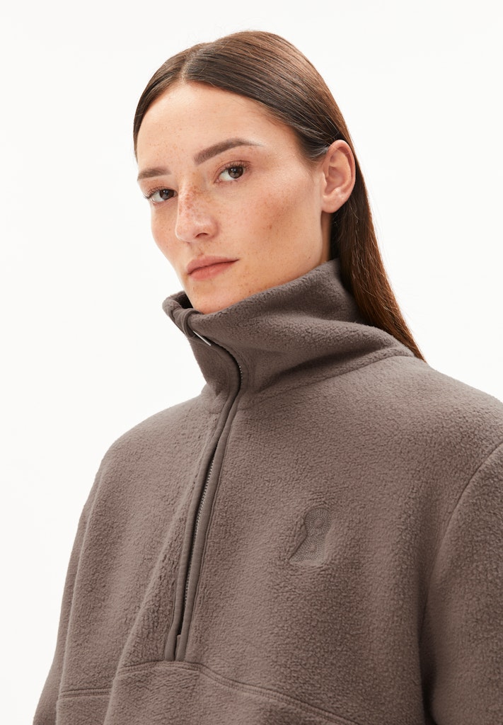 The HAARLEENAA fleece sweatshirt features a wide, comfortable fit with a stand-up collar. An Å-logo on the chest and the 100% organic cotton fabric offer both style and comfort.