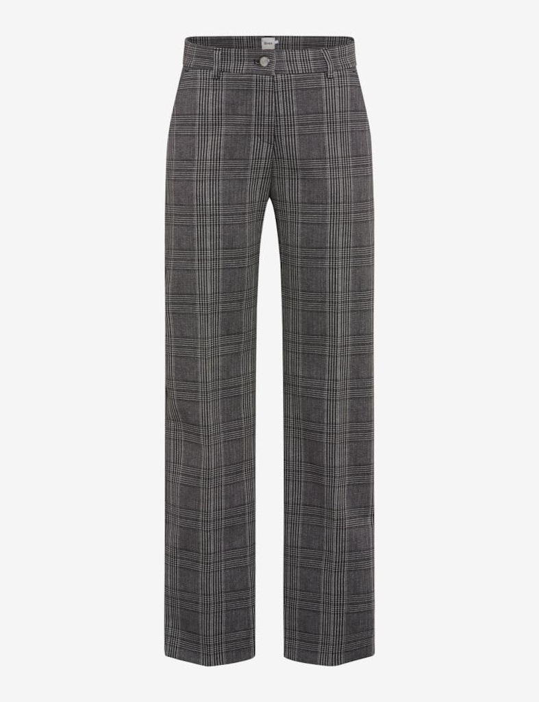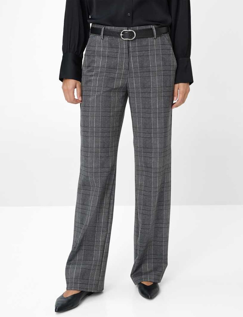 Glencheck modern interpretiert. Die Palazzohose im STYLE MAINE gelingt dieser Anspruch bestens. Mit ihrer weiten, geraden Form in einem Wide Leg und der normal sitzenden Leibhöhe vereint die Damenhose zeitgemäßen Chic mit einem Hauch von Retro-Charme. Französische Taschen und eine Leistengesäßtasche unterstreichen das Design, das durch den Bügelbruch elegant akzentuiert wird. Eyecatcher ist bei der Hose aber das klassische Glencheck-Muster in edlen Grauabstufungen. Perfekt für vielseitige Looks. Umgesetzt ist die trendige Kreation in einer soften Jersey-Qualität aus Polyester, Viskose und Elasthan. Dieser elastische Materialmix vereint einen geschmeidigen Fall mit Formstabilität und angenehmem Hautgefühl. So ist diese Palazzohose ein Must-Have für modebewusste Frauen.