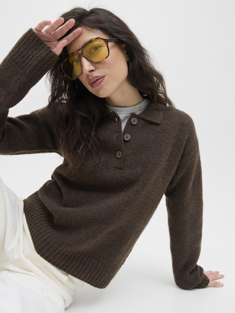 Dieser Basic-Strick passt zu allem in Ihrem Kleiderschrank.Flachstrick ist ein Strickstoff mit Komfort und Flexibilität. - Produkttyp : Gestrickter Rollkragen - Hals : Polokragen - Ärmel : Langarm - Manschetten : Gerippte Ärmelbündchen - Verschluss : Bindeverschluss - Passform : Locker geschnitten
