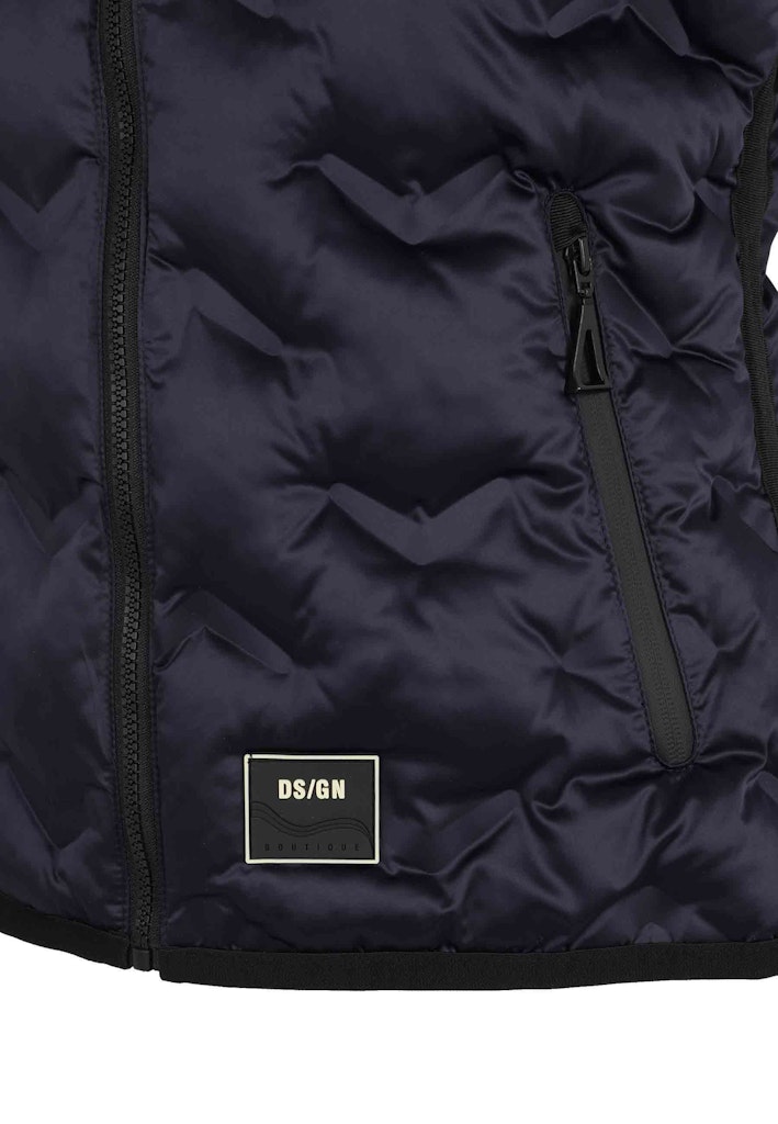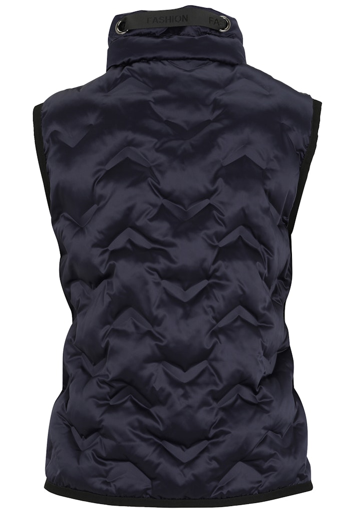 Dünn wattierte ärmellose Weste von Doris Streich aus softer Nylon-Ware mit sog. Ball-Stuffing gefertigt. Die Weste mit Ihrem dekoratives Allover 3D-Prägemuster wird komplettiert durch den Reissverschluss mit dekorativem Anhänger, Bändern mit 3D-Prägung,