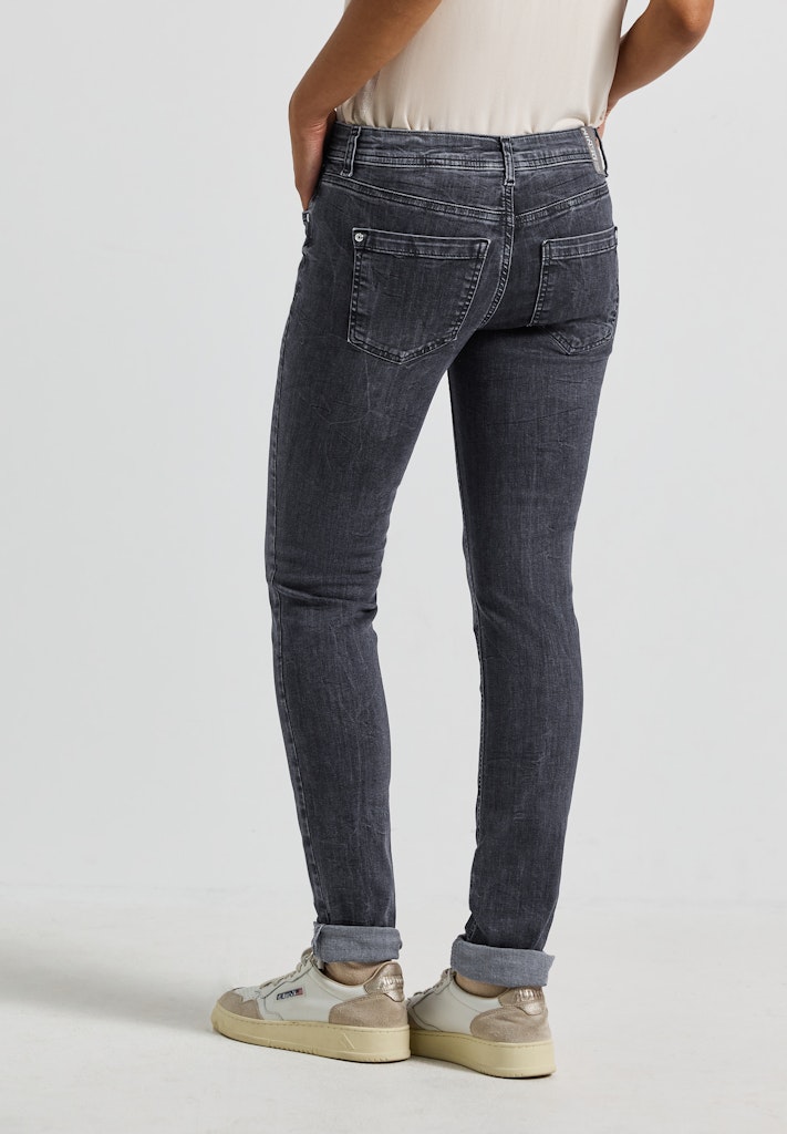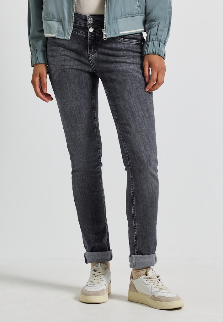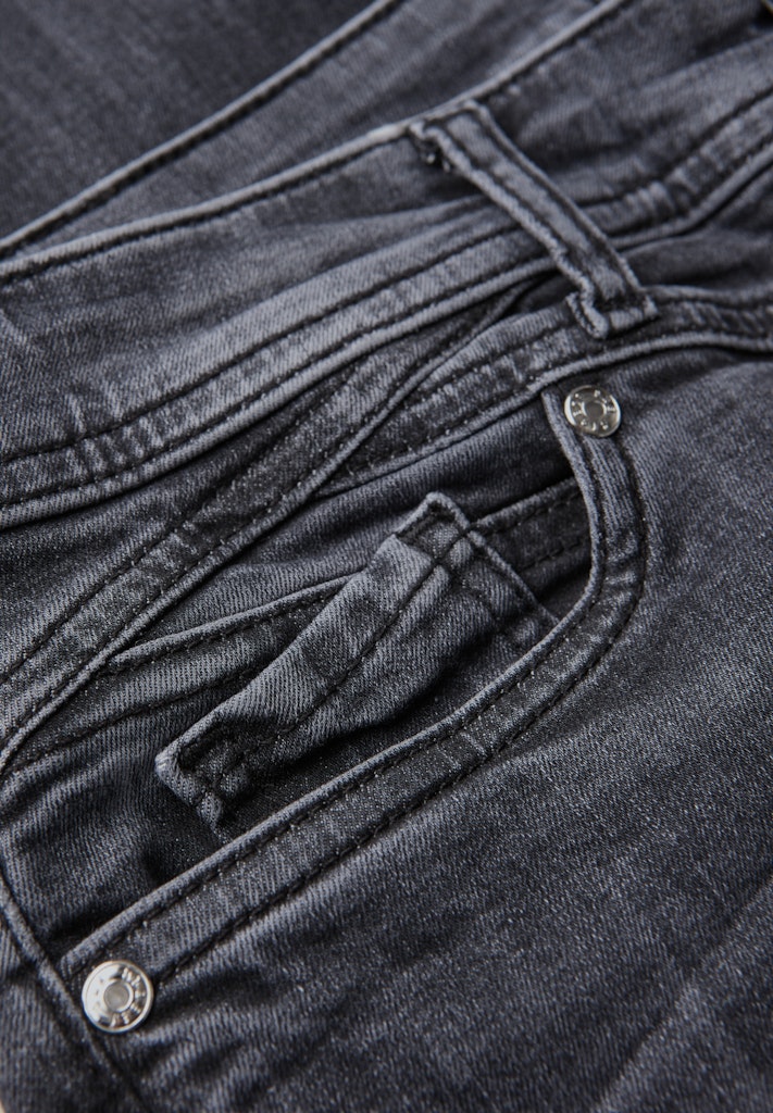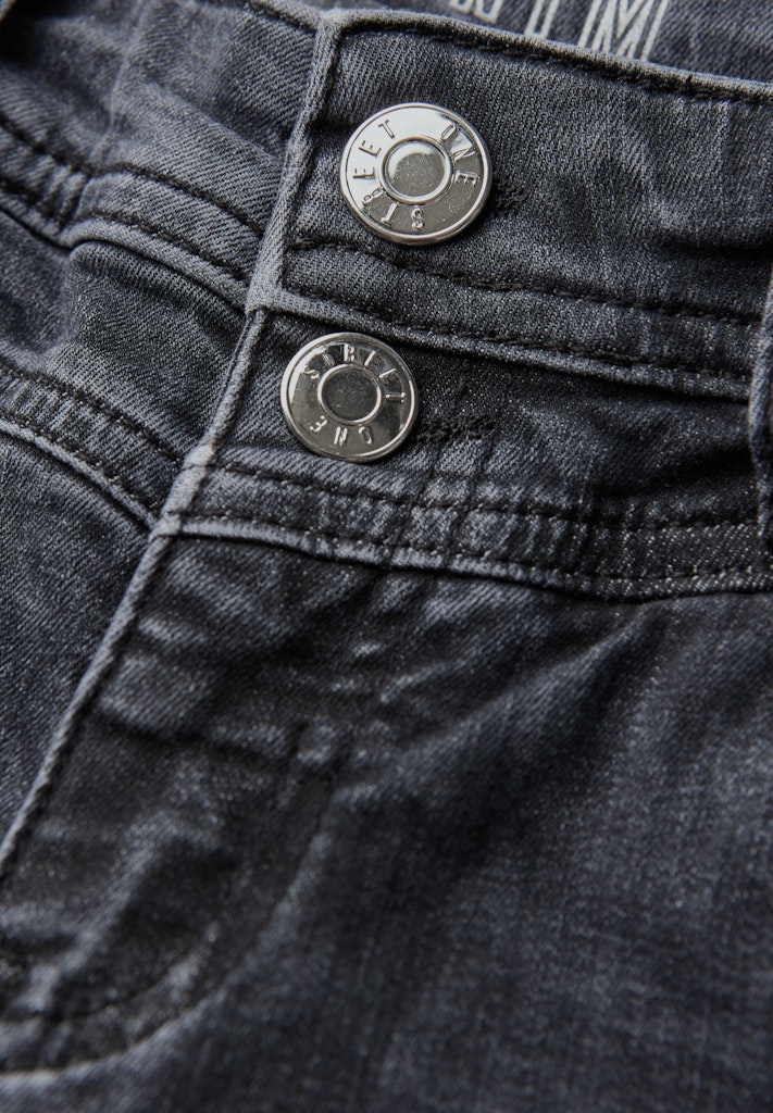 Im Style Jane präsentiert sich diese Casual Fit Jeans von Street One für Damen mit entspannter Passform und figurbetonten Slim Legs. Die graue Waschung verleiht ihr einen modernen Look, während der stretchige Baumwollmix angenehmen Tragekomfort bietet. Jeanshose Mid Waist und Slim Legs Graue Waschung 5-Pocket-Style Baumwollmix mit Stretchanteil Material: 82% Baumwolle, 15% Polyester, 3% Elasthan