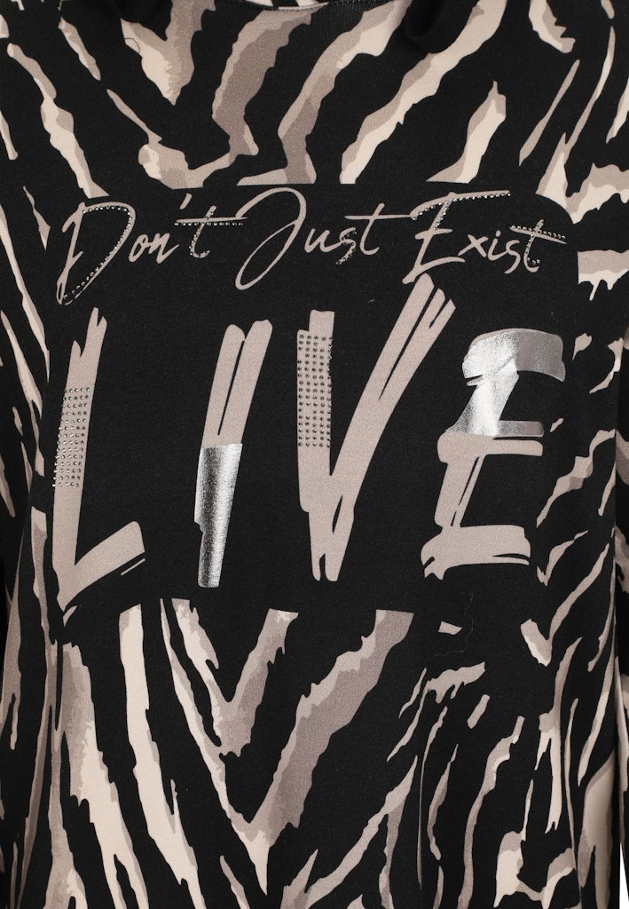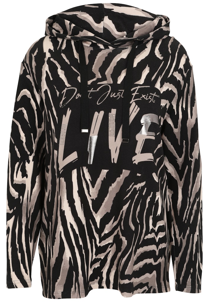 Das lässige Sweatshirt mit Hoodie von Doris Streich ist aus elastischer Sweatware gefertigt. Der markante Animal-Print, das partiell silberne Motiv "Don't just exist - LIVE" und die dekorativ breite Kordel am Hoodie sind ein Hingucker.