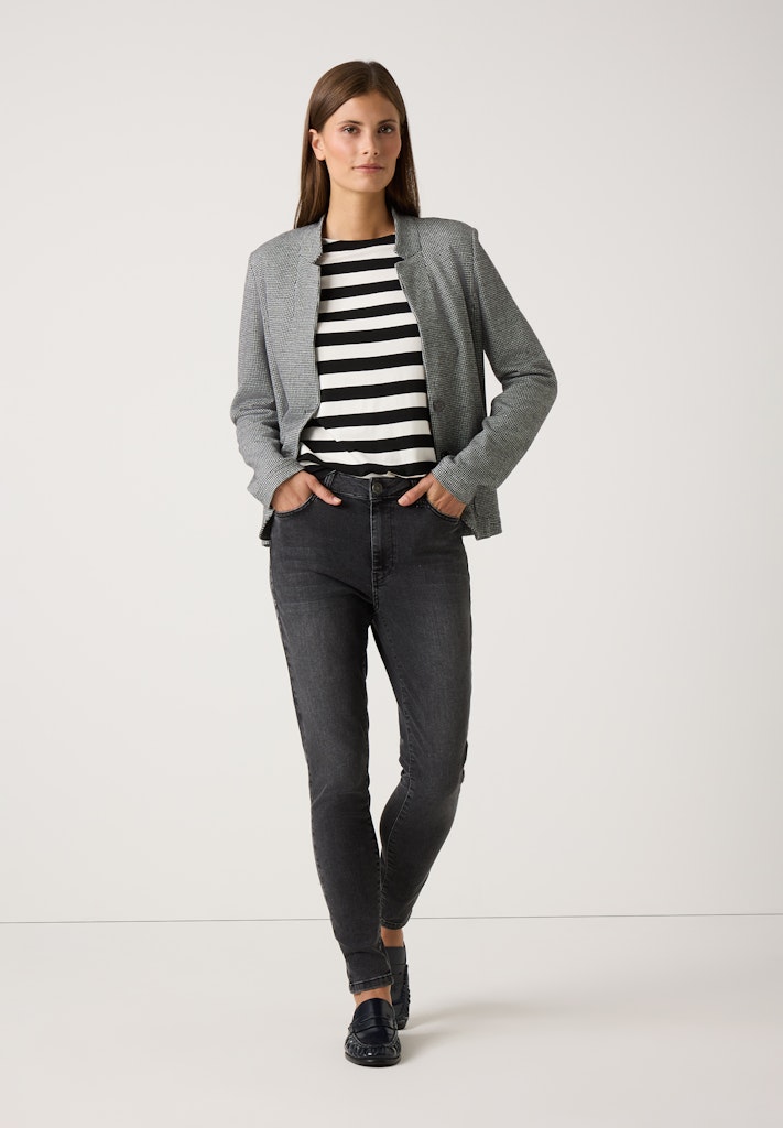 Ein absoluter "Evergreen" von MORE & MORE ist das zweifarbige Ringelshirt mit 3/4 langen Ärmeln und U-Boot Ausschnitt. Es funktioniert 24/7, egal ob zum seriösen Businessanzug, zur verwaschenen Jeans oder zur lässigen Cargohose, sogar zum einfarbigen Maxirock sieht das Shirt super aus.