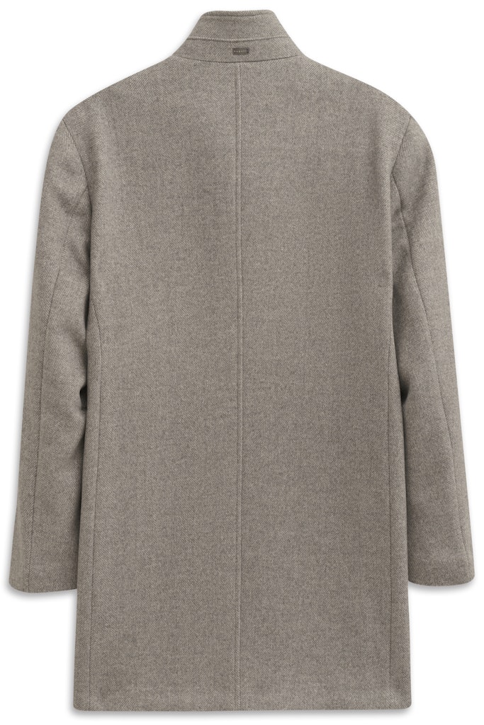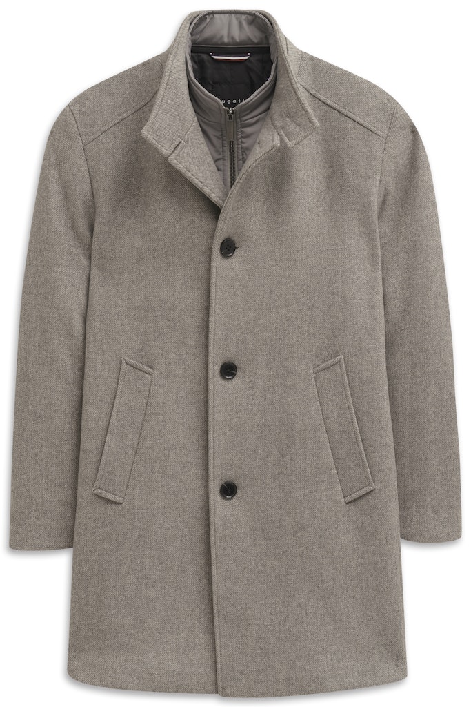 Klassischer Stehkragenmantel mit heraustrennbarem Westenfake und schrägen Leistentaschen. Innen ein ganzes Futter mit Flexcity Einsätzen im Rücken und Innentaschen. Der Artikel mit 40% Wollanteil hat eine Fischgräten Dessinierung.