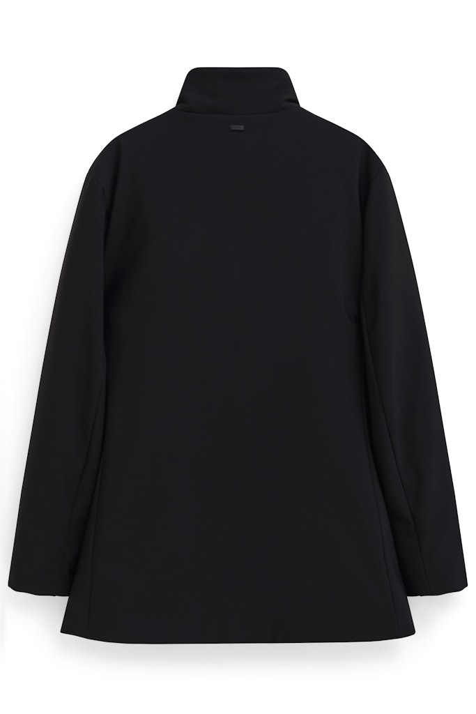 Stehkragen Mantel mit doppelten Strickkragen nach Innen und Sorona Füllung. Verklebte Blende verdeckt den Reißverschluss in der vorderen Kante. Verklebte Leiste über den Seitentaschen mit Reißverschluss. Im Ärmel eine innenliegende Stulpe. Innen ein ganzes Steppfutter und Innentaschen. Der Artikel mit stretch Funktion hat eine wasserabweisende Eigenschaft und ein gepflegtes Gesamtbild.