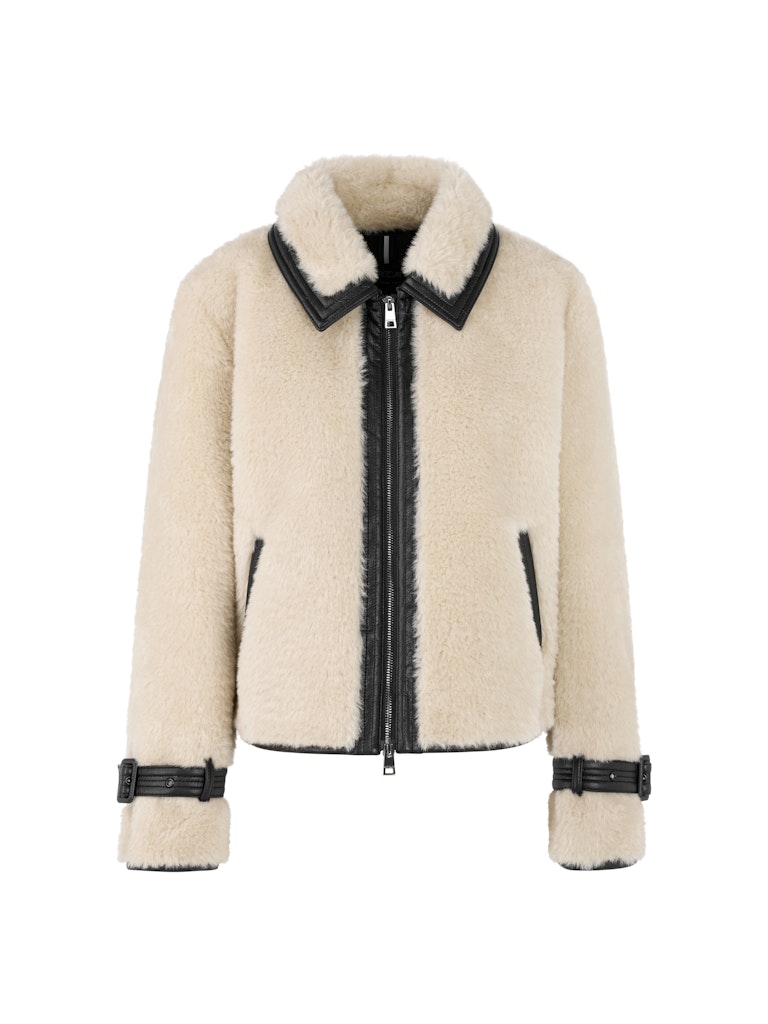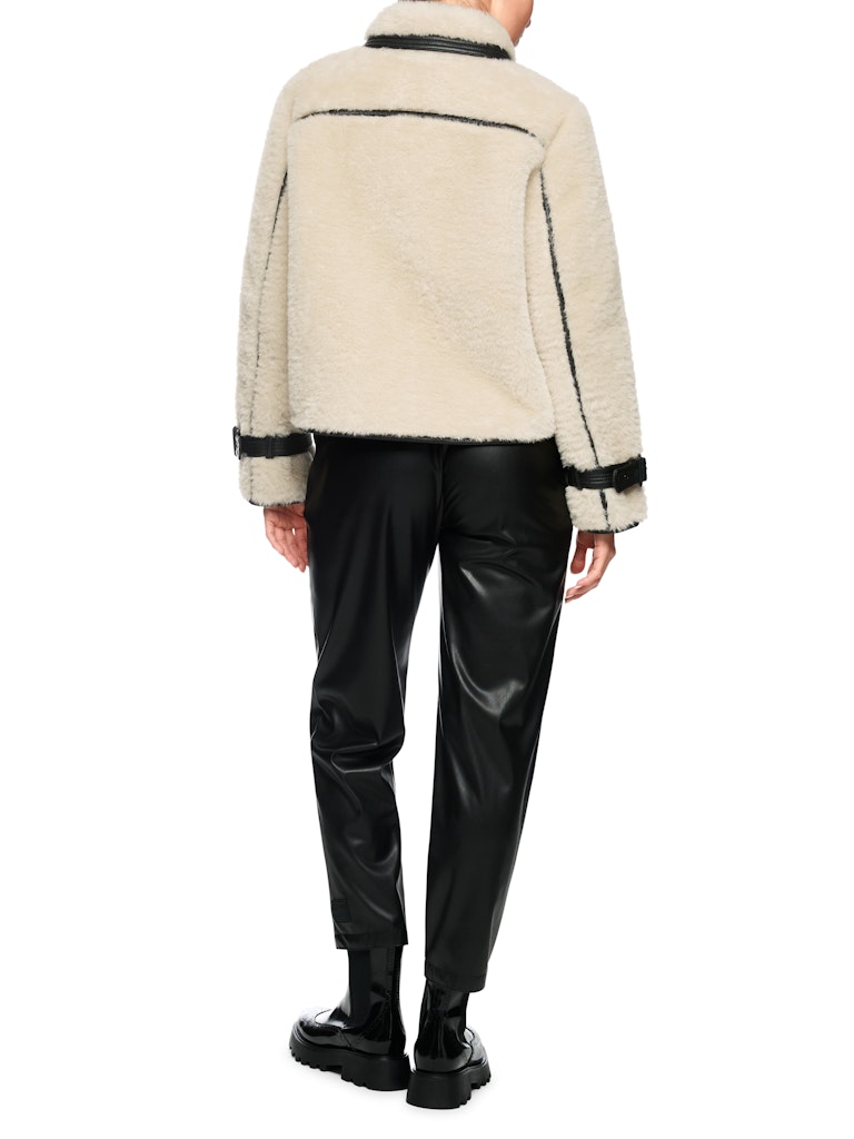 Kunstfelljacke mit Riemendetail|Weiche Kunstfelljacke mit klassischem Hemdkragen und Kunstlederfutter. Zwei seitliche Eingriffstaschen bieten Stauraum. Ein dekorativer Riemen mit Schnalle an den Ärmeln setzt einen stilvollen Akzent. Die Jacke kombiniert Komfort mit modischem Statement und ideal für kühlere Tage.|Gerader Schnitt|Seitliche Eingriffstaschen|Innenfutter aus Kunstleder|Mit Reißverschluss|Das Model ist 179 cm groß und trägt N3/38.