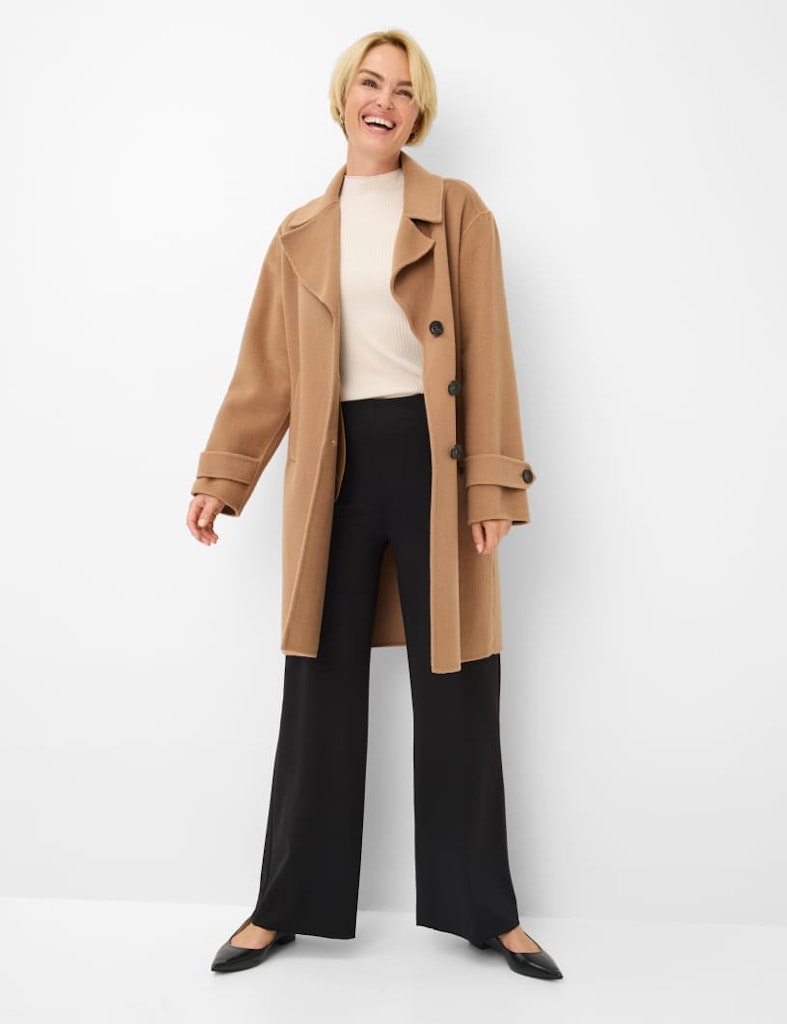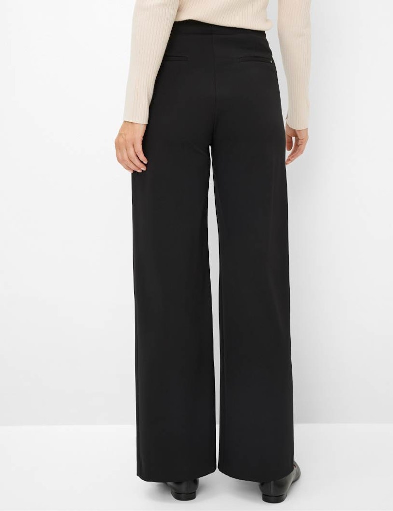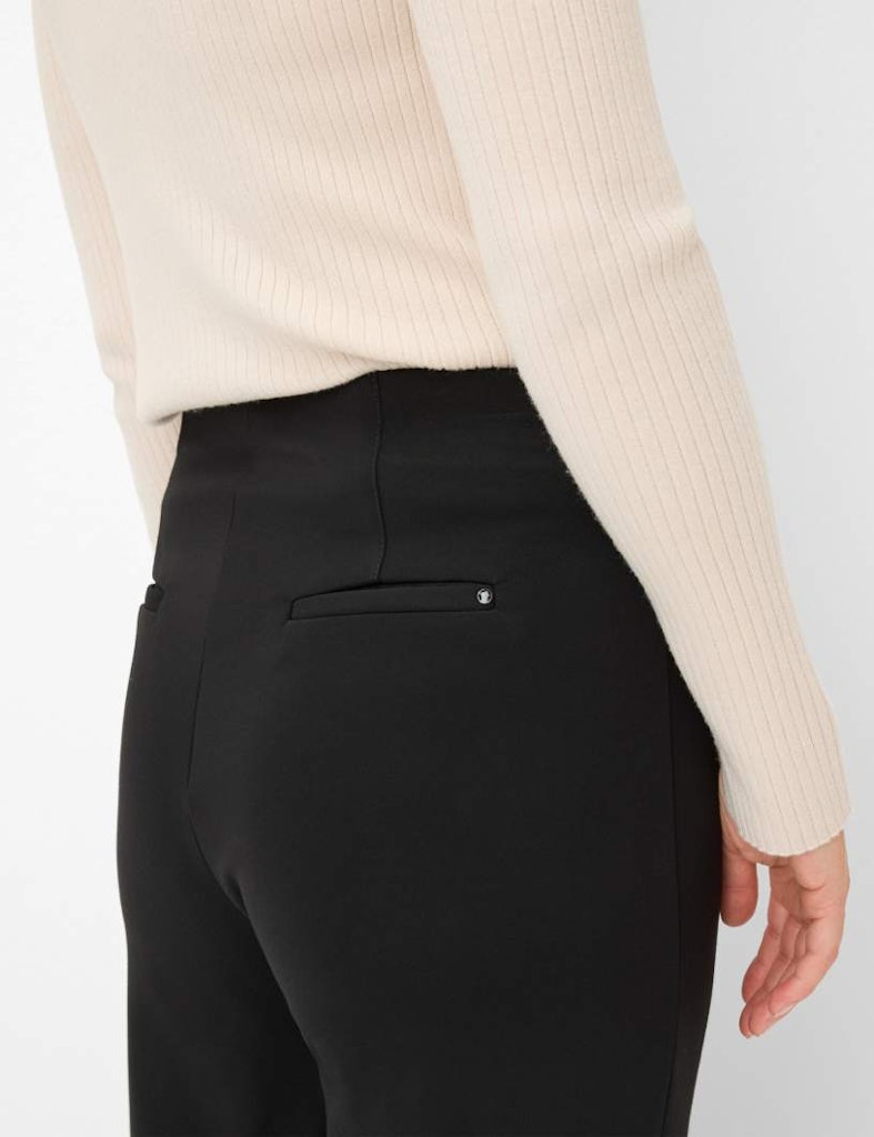Der Winter ruft nach stilvoller Eleganz, und die Marlenehose im Style LILLYTH FLARED wird diesem Anspruch spielend gerecht. Diese feminine Schlupfhose kombiniert modernes Design mit einem Hauch von klassischer Anmut. Im Super Slim Fit, der durch schlanke Oberschenkel, einen leicht ausgestellten Beinverlauf und einer hohen Leibhöhe betont wird, zaubert sie eine schmeichelhafte Silhouette. Der elastische Pull On-Dehnbund sieht nicht nur gut aus, sondern sorgt bei dieser Hose für einen komfortablen Sitz. Besonders raffiniert wirken die dezenten Leistengesäßtaschen, die das minimalistische Erscheinungsbild unterstreichen, während funkelnde Swarovski-Elemente subtile Highlights setzen. Gefertigt aus einer hochwertigen Jersey-Qualität, bietet diese Hose ein wunderbar weiches Tragegefühl und einen geschmeidigen Fall. Der Materialmix aus Viskose, Polyester und Elasthan begeistert zudem mit Formbeständigkeit und einer hervorragenden Farbbrillanz. Diese Kombination aus Komfort und Stil macht die Marlenehose zum vielseitigen Allrounder.