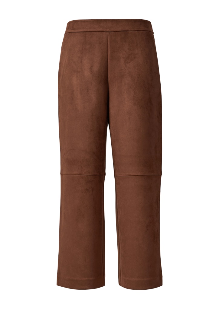 Stylische Culotte mit Velourleder-Look und hohem Bund für einen lässigen Auftritt. Der elastische Bund und die Eingrifftaschen sorgen für Komfort im Alltag. Ein vielseitiges Piece, das deine Outfits aufwertet und sich mühelos kombinieren lässt.