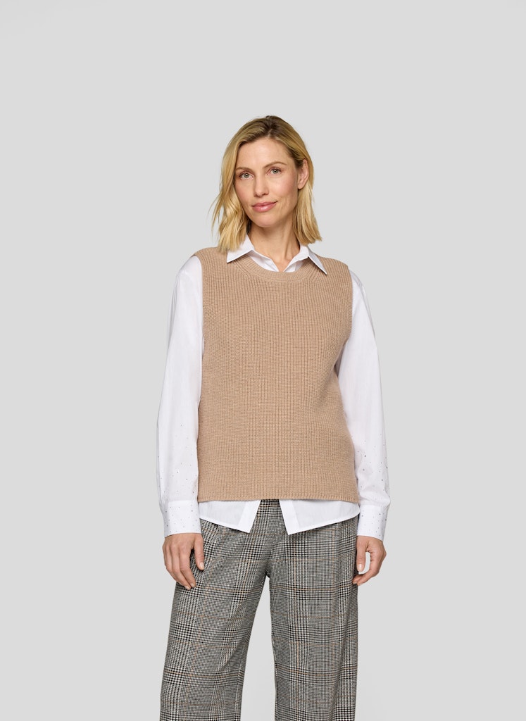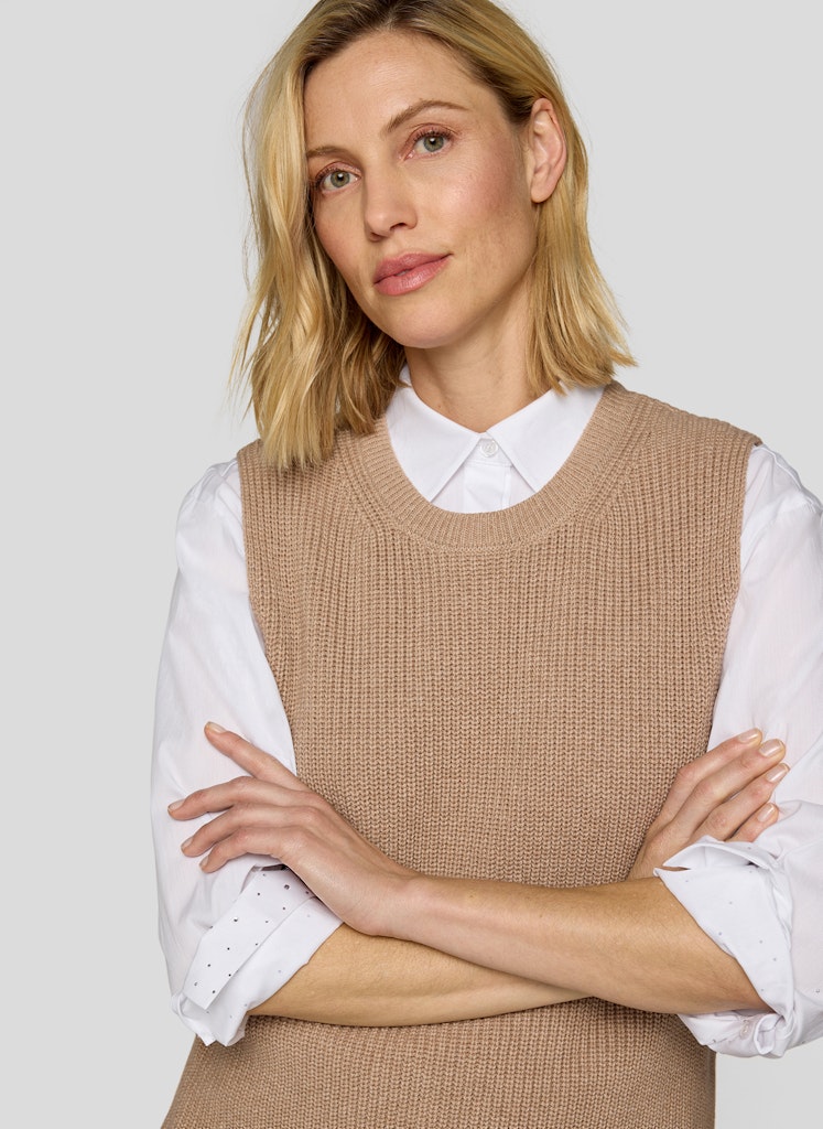 Diese Strickweste in weicher Baumwollmischung überzeugt mit klassischer Struktur-Optik und gerader Passform. Der Rundhalsausschnitt und die Seitenschlitze verleihen dem Modell eine moderne Note _ ideal für Lagenlooks über Blusen oder Longsleeves. Weiche Feinstrickqualität. Seitenschlitze für Bewegungsfreiheit. Rundhalsausschnitt mit Rippenstrick. Strukturstrick in modischer Optik.