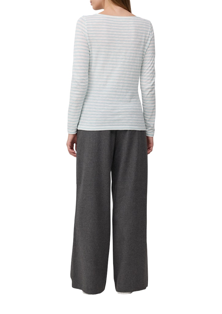 Gestreiftes Longsleeve mit U-Bootausschnitt für lässige Alltagsmomente. Weicher Jersey und Flammgarn-Optik sorgen für Komfort. Die Slim-Fit-Passform schmeichelt deiner Silhouette. Ein vielseitiger Begleiter für entspannte Tage.